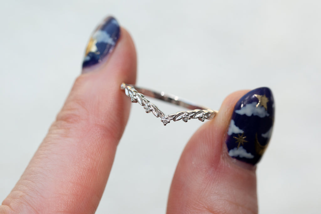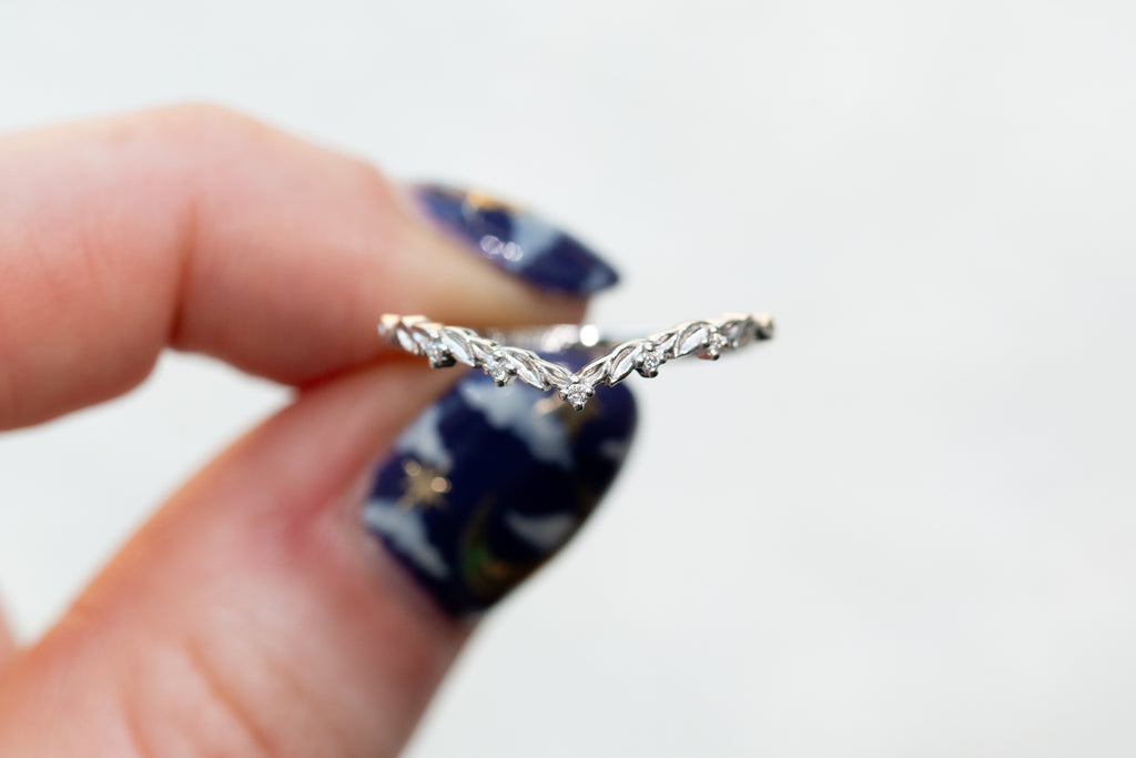 READY TO SHIP- Size 7.25, 18k white gold Chevron Leafy Wedding Band