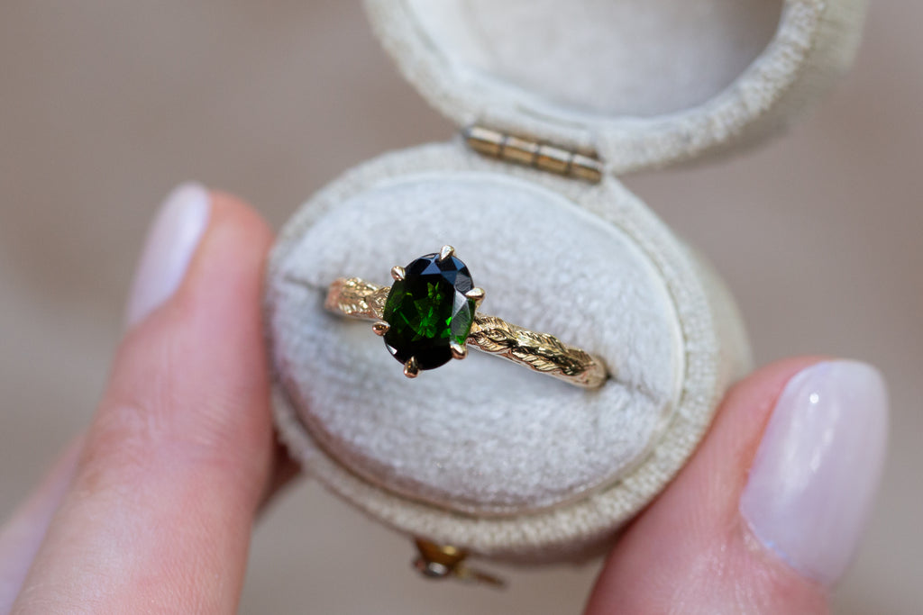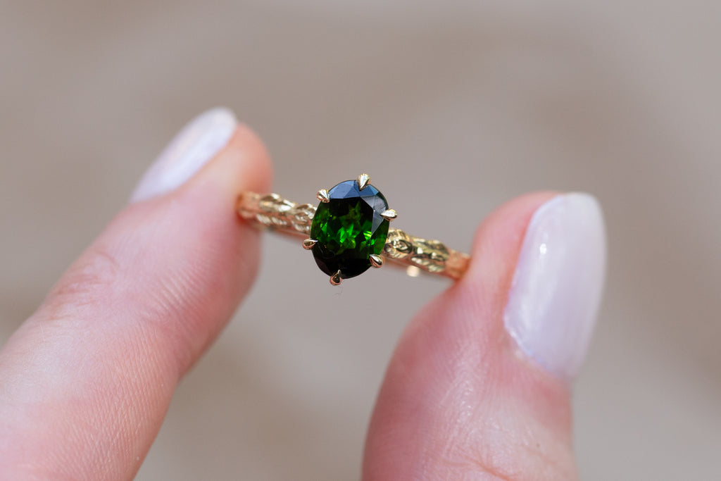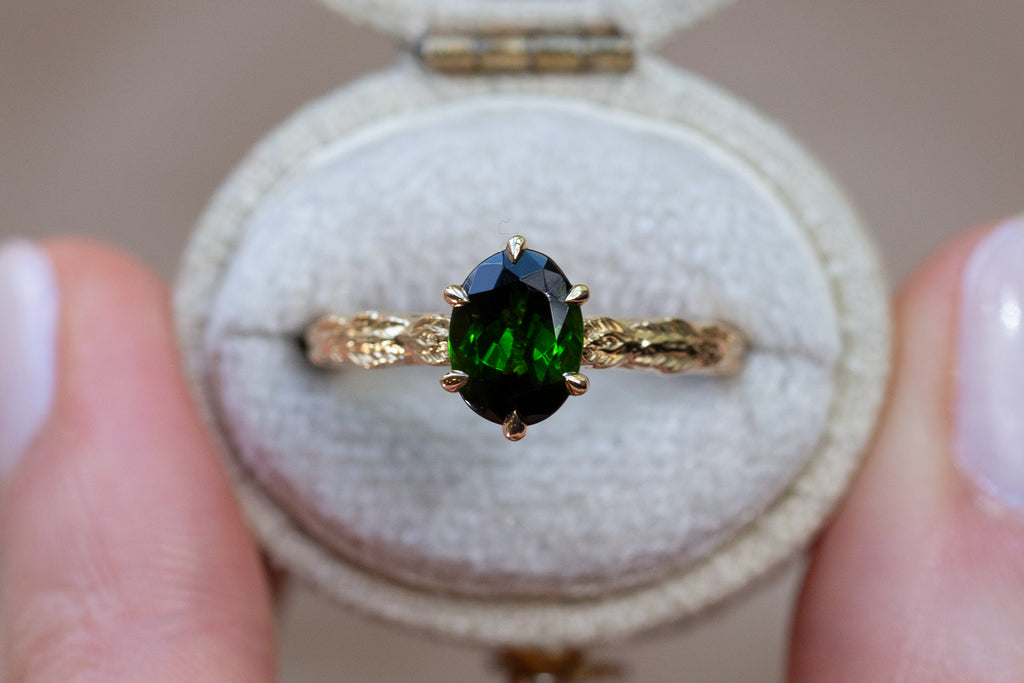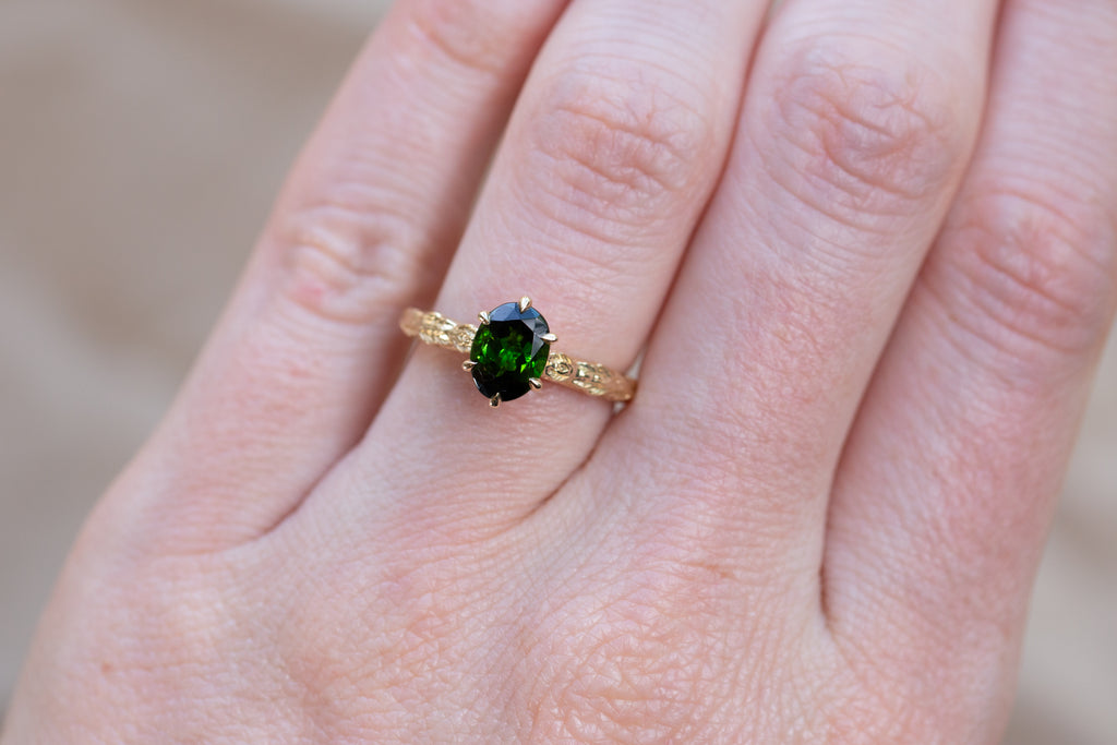 -Center: 8x6mm oval dark green tourmaline