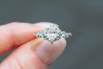 -Side/Accents Stones: 3mm round aqua irradiated diamond, 1mm round aqua irradiated diamond