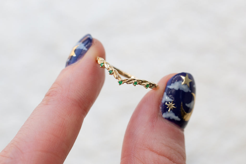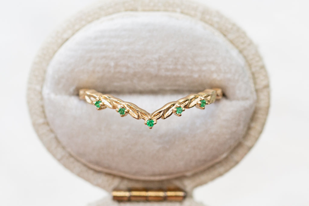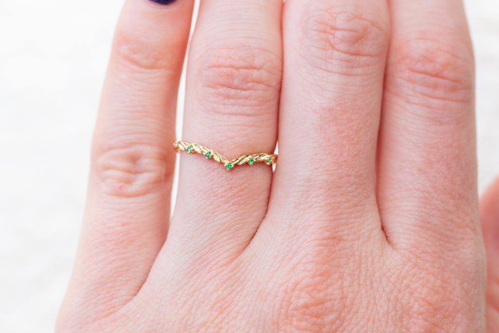 READY TO SHIP - Size 6, 14k yellow gold Chevron Leafy Wedding Band