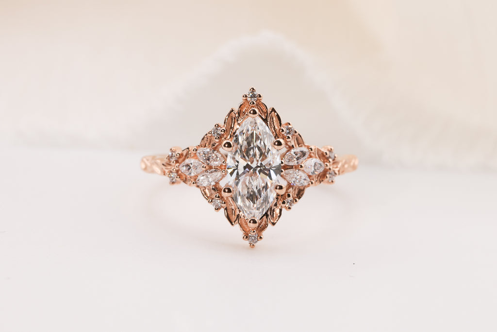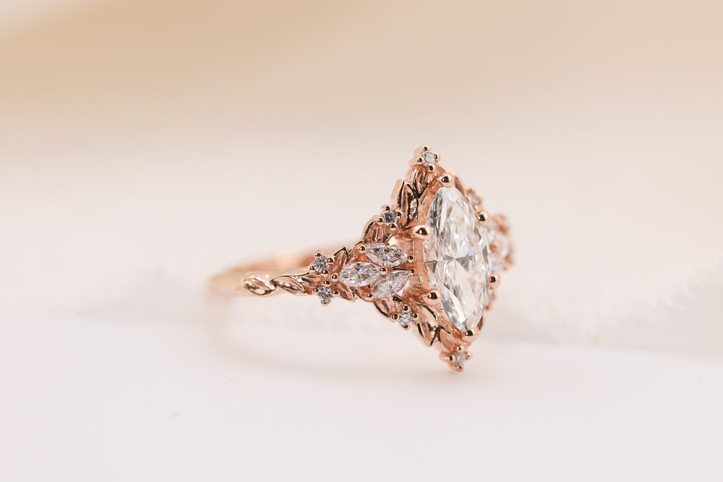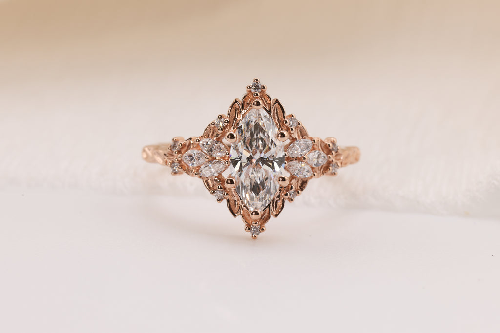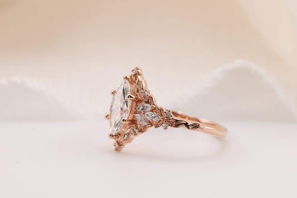 -Side/accent stones: 3x1.5mm marquise lab diamond, 1mm round lab diamond