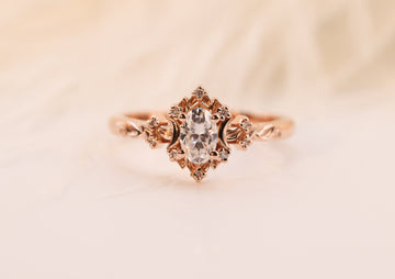 Ready to ship, Size 7 14k rose, Briar halo moon setting