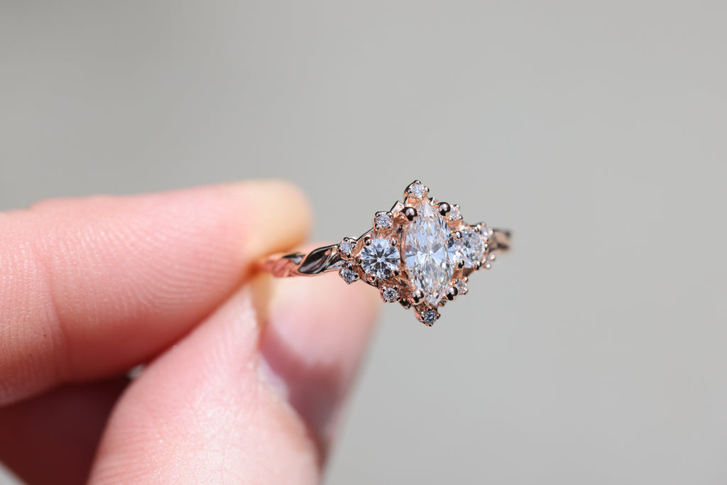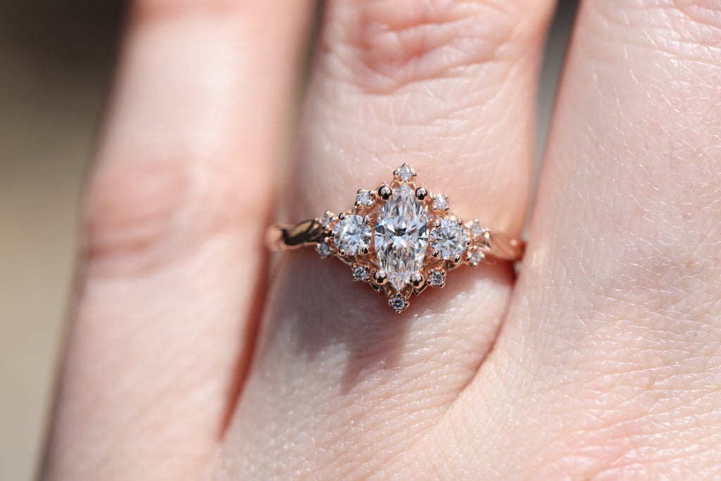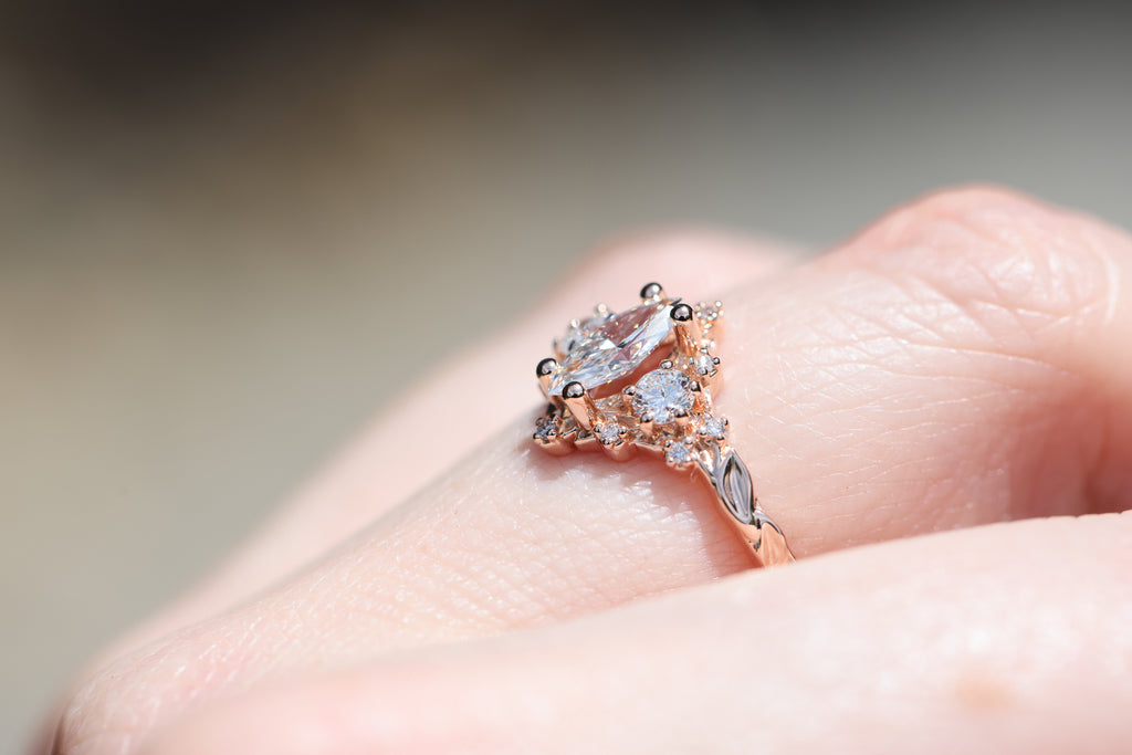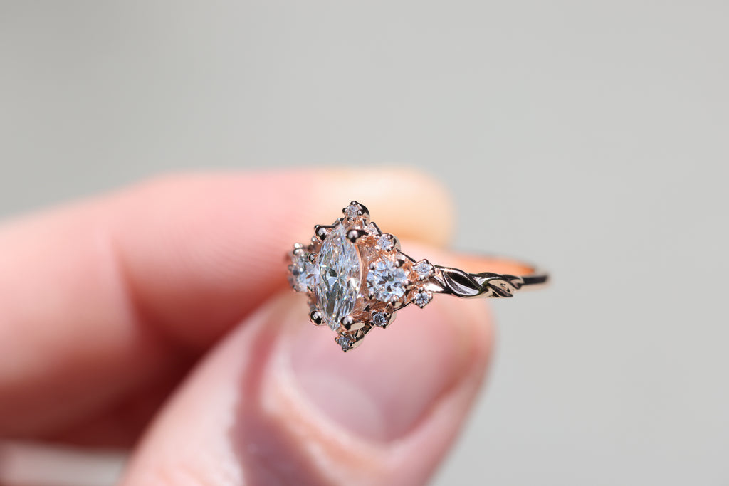 - Side/accent stones: 3mm lab diamond, 1mm lab diamond