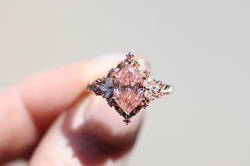 -Side/Accent Stones: 3x1.5mm lab diamond, 1mm lab light pink sapphire