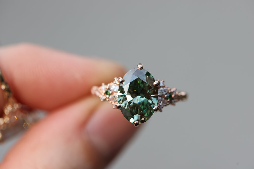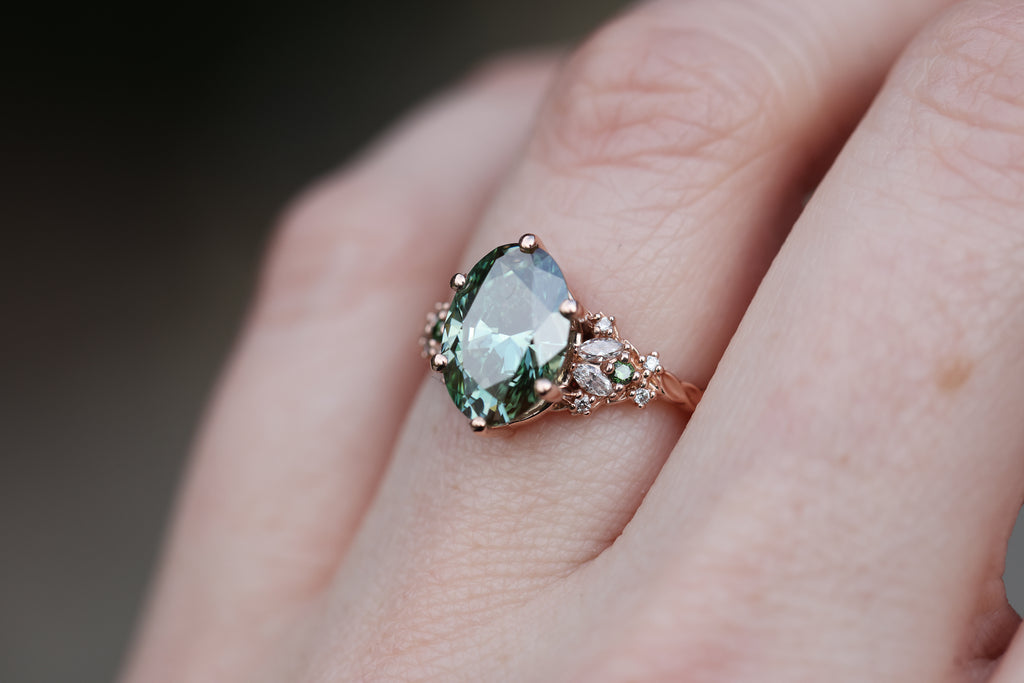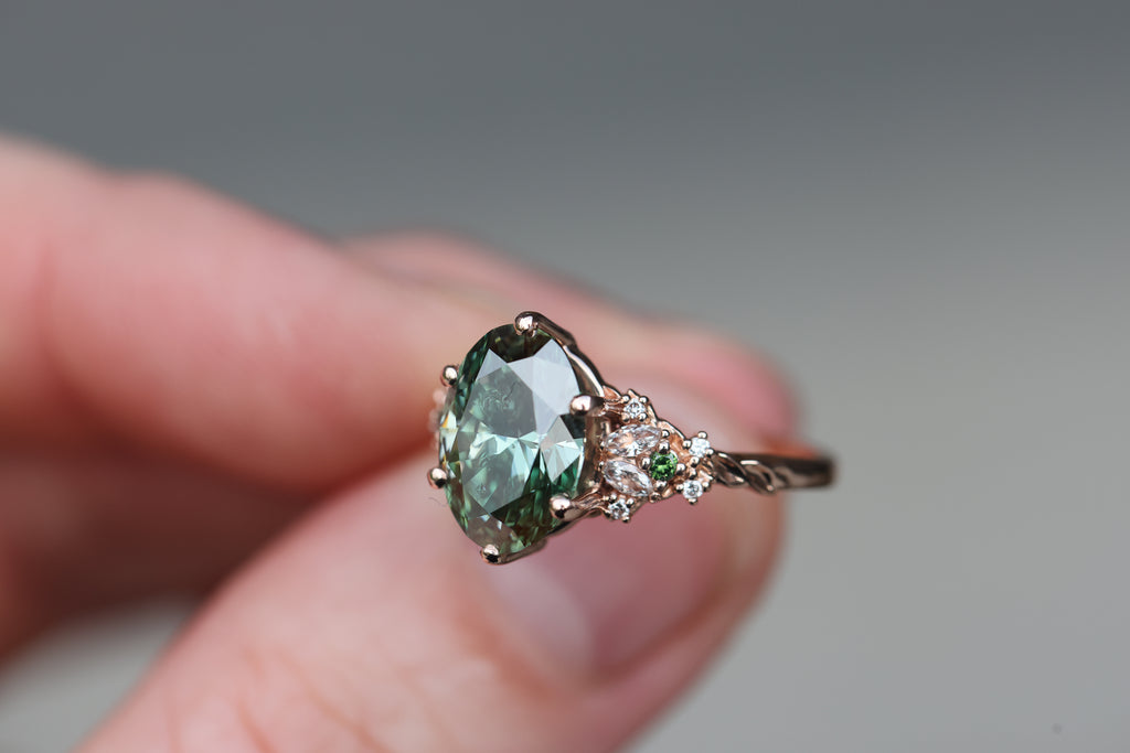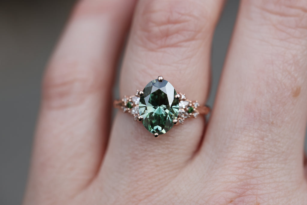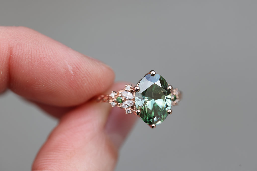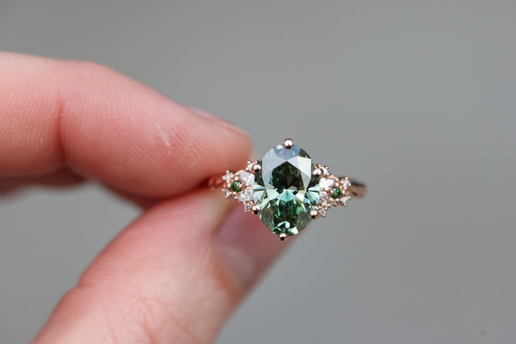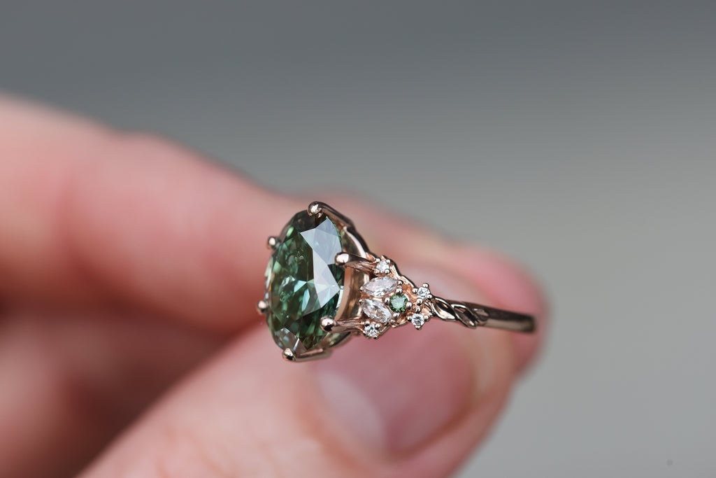 Ready to ship, Size 7 14k rose enchanted garden with lab green diamond