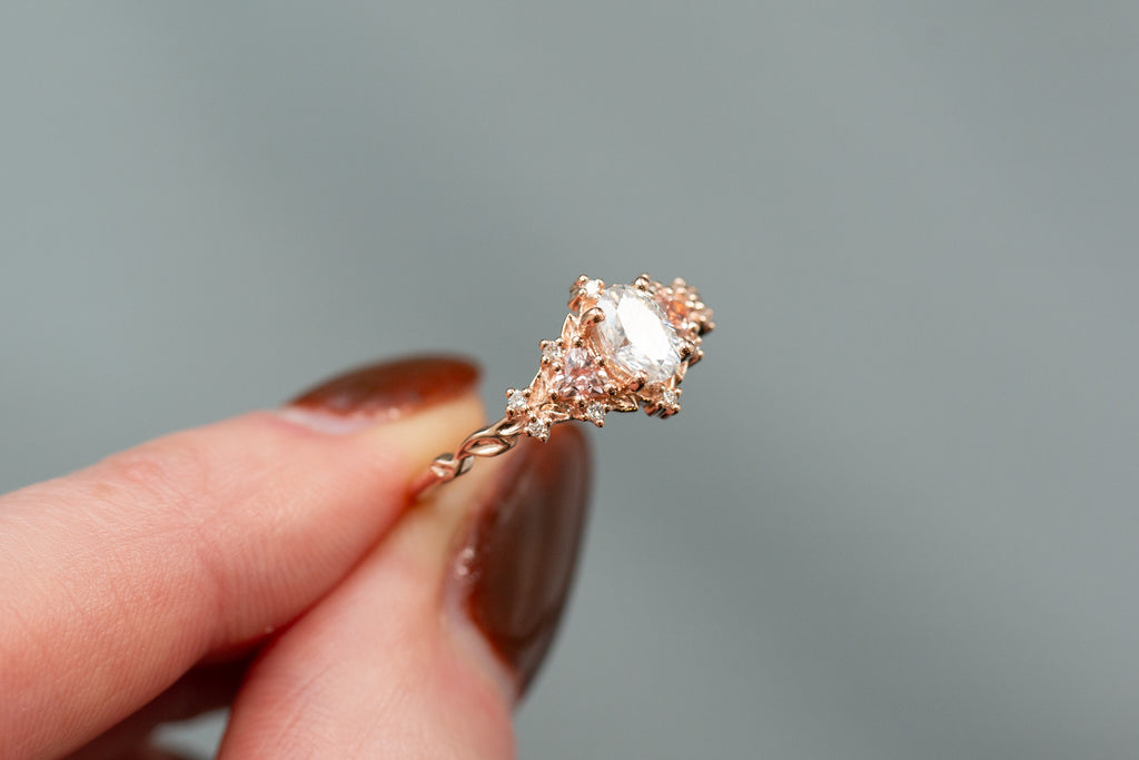 READY TO SHIP - Size 7, 14k Rose Gold Briar Rose Three Stone