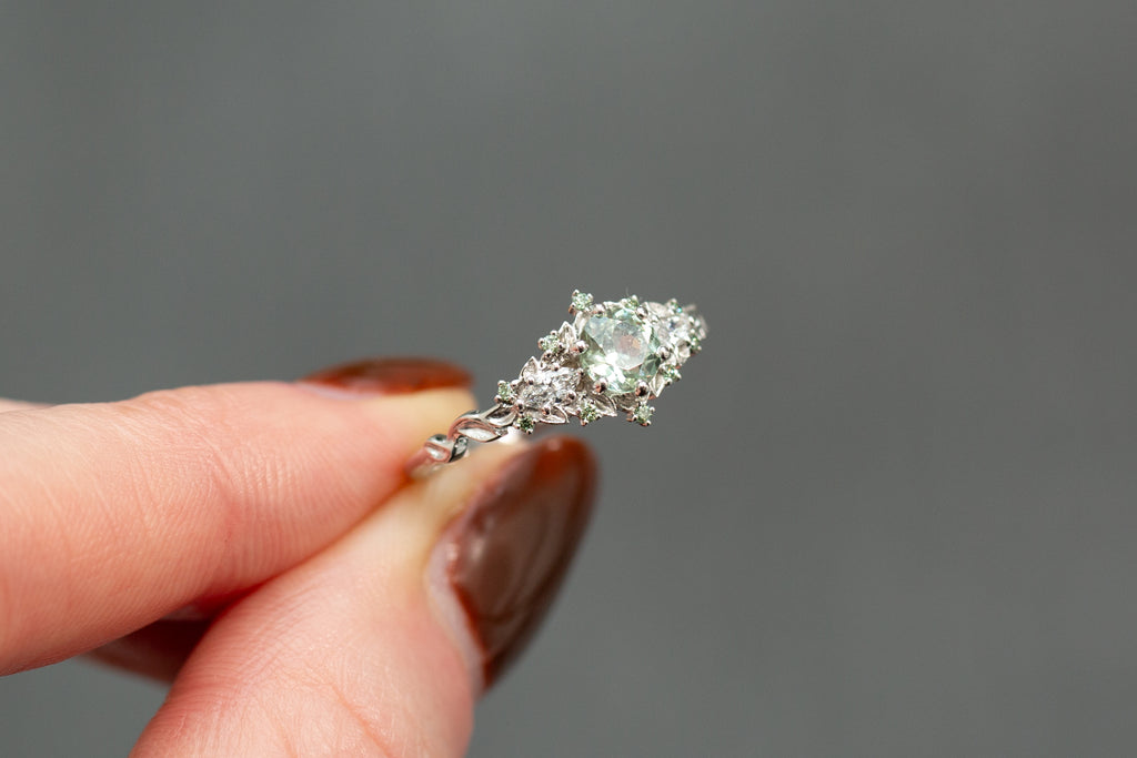 READY TO SHIP - Size 7, 18k White Gold Briar Rose Three Stone