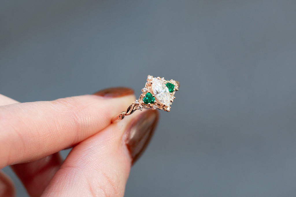 READY TO SHIP - Size 7, 14k Rose Gold Briar Rose Three Stone
