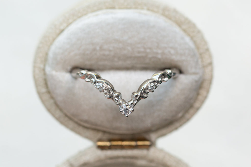 READY TO SHIP- Size 6.5, platinum Curved Filigree Wedding Band