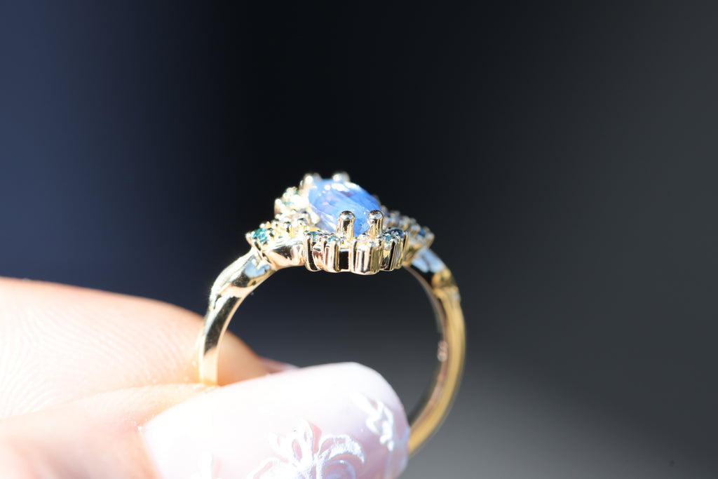 READY TO SHIP - size 7 14k yellow Astraea Half Halo
