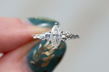 Ready to Ship - Size 3.75, 18k white gold Leaf Cathedral Ring