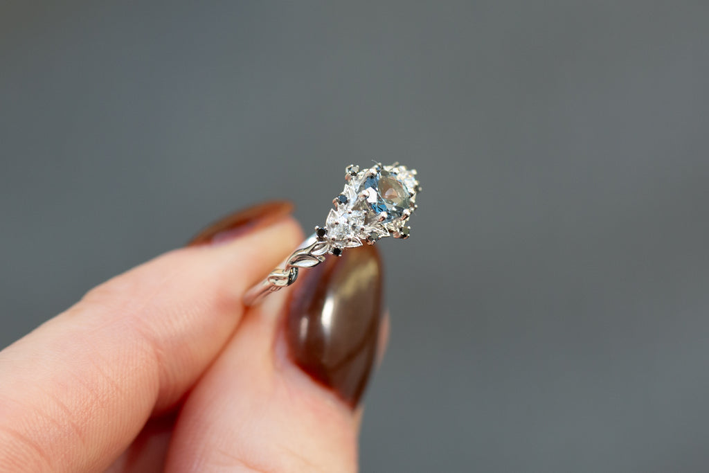 READY TO SHIP - Size 7, 14k White Gold Briar Rose Three Stone