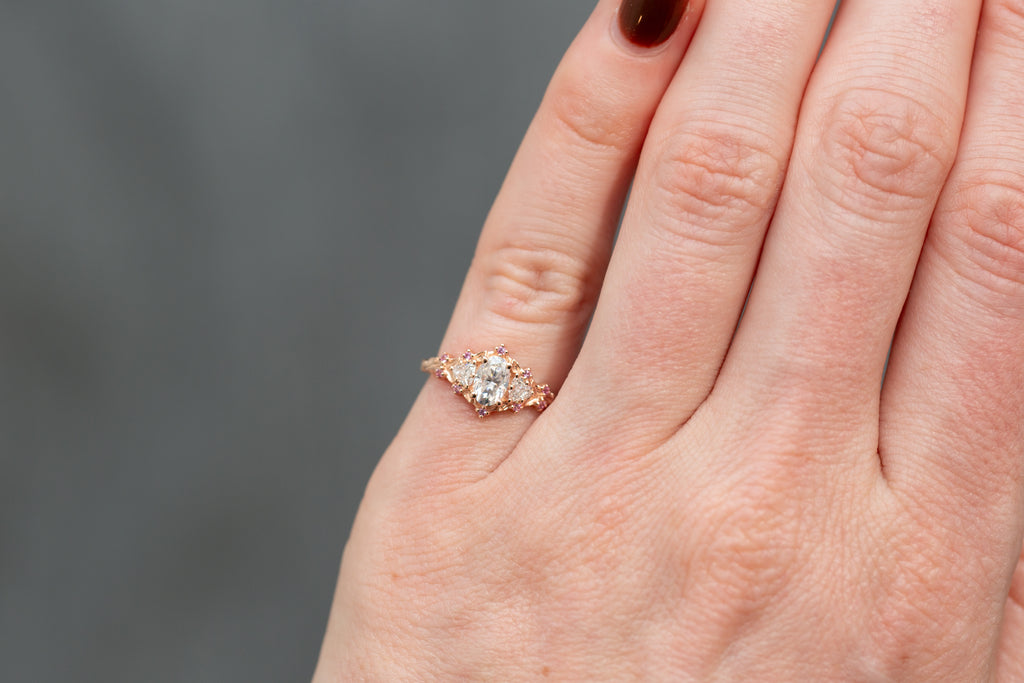 READY TO SHIP - Size 4, 14k Rose Gold Briar Rose Three Stone