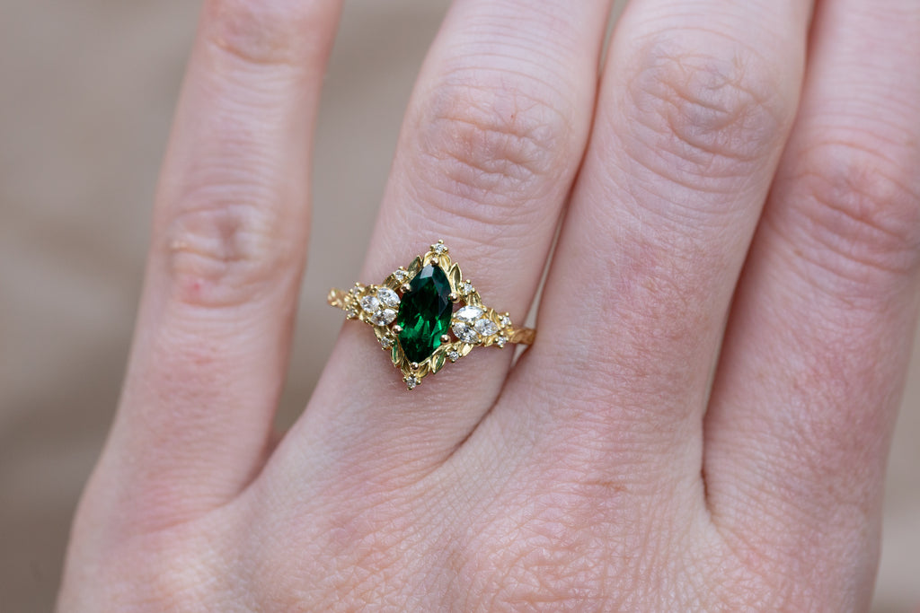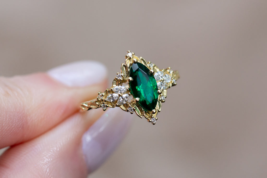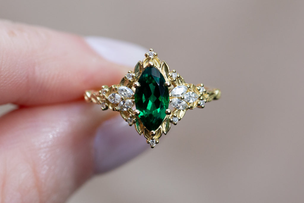 -Side/Accents: 3x1.5mm marquise lb diamond, 1mm lab diamond