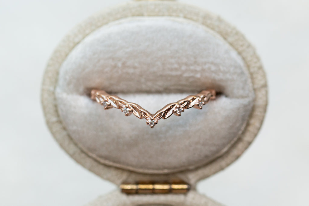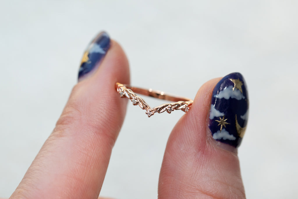 READY TO SHIP- Size 4.5, 14k rose gold Chevron Leafy Wedding Band