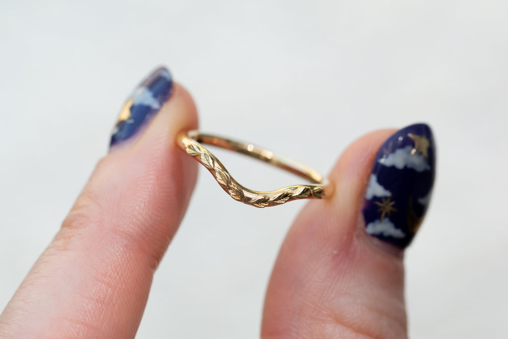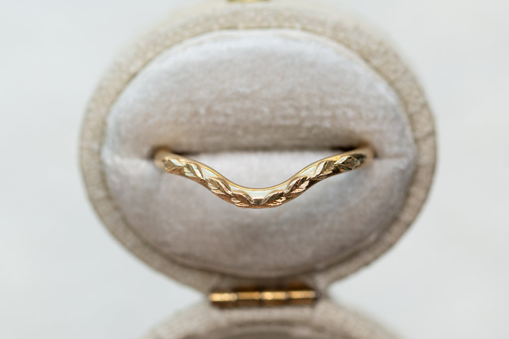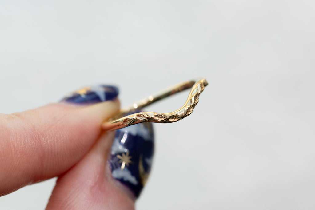 READY TO SHIP- Size 6.75, 14k yellow gold Curved Leaf Wedding Band