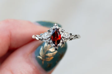 - Center Stone: 8x4mm marquise garnet