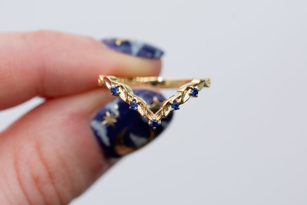 READY TO SHIP - Size 6.5, 14k yellow gold Deep Chevron Leafy Band