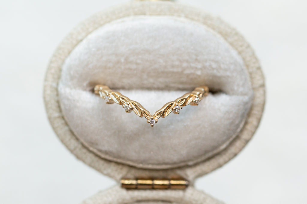 READY TO SHIP- Size 3, 14k yellow gold Chevron Leafy Wedding Band