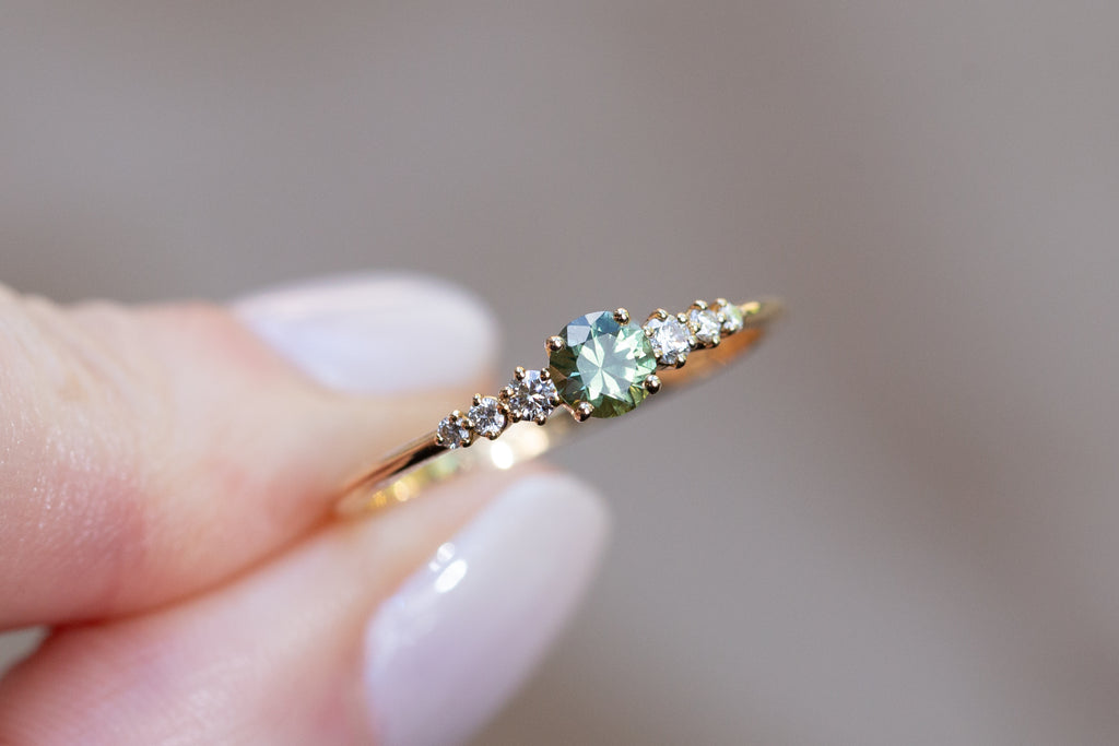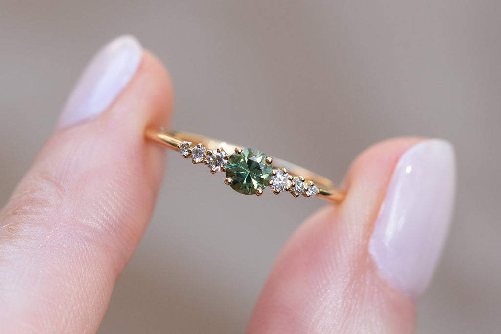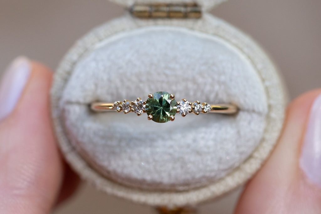 -Center: 4mm lab green sapphire
