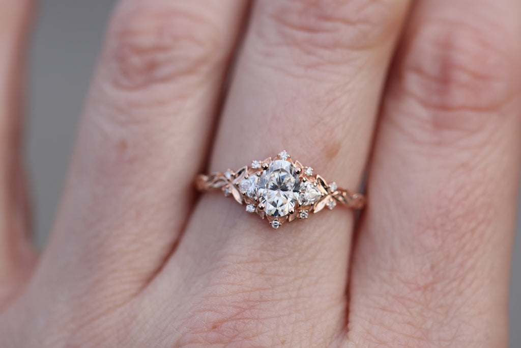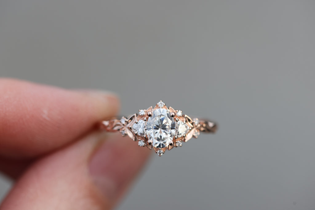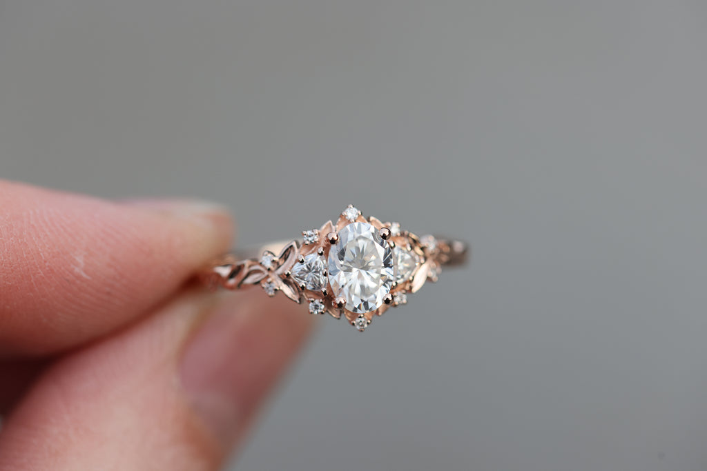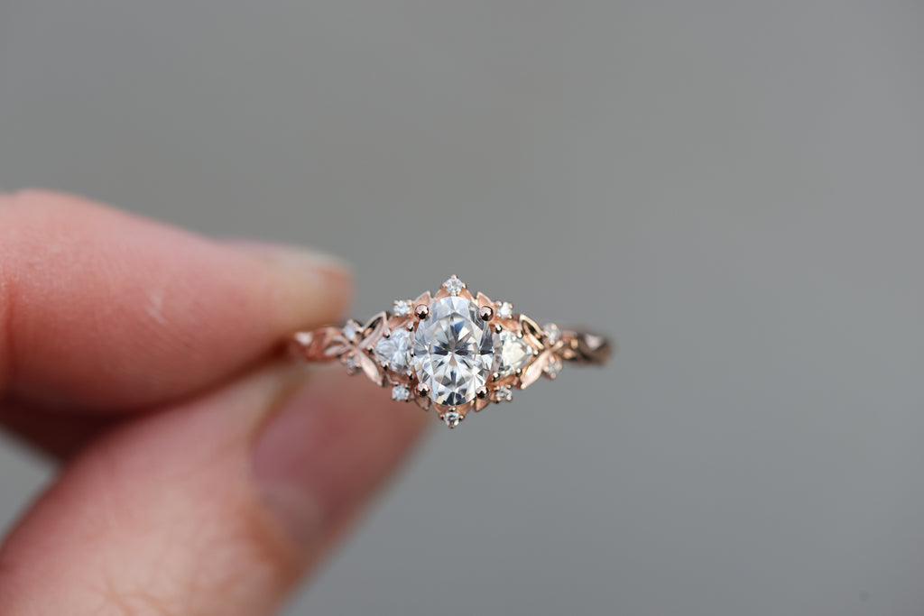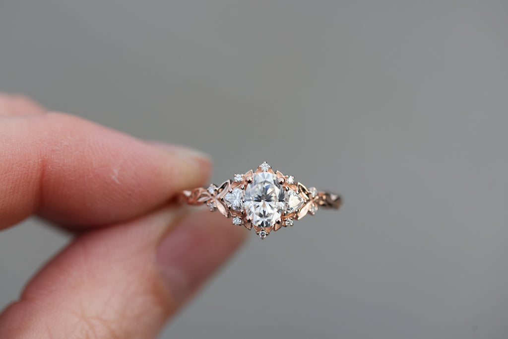 -Center: 7x5mm oval moissanite DEF