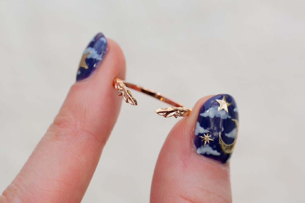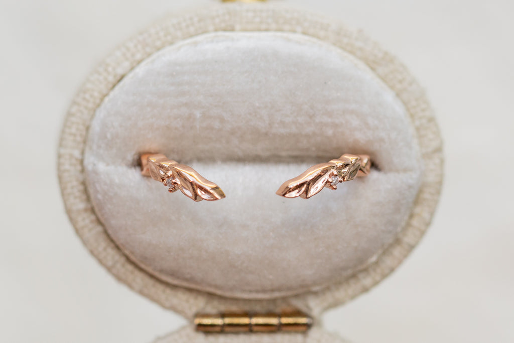 READY TO SHIP - Size 5.5, 14k rose gold Open Leaf wedding band