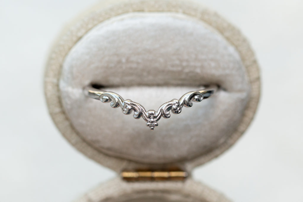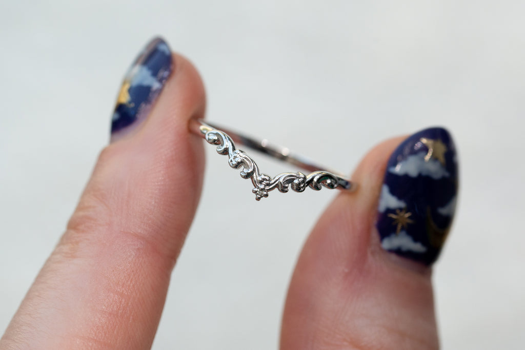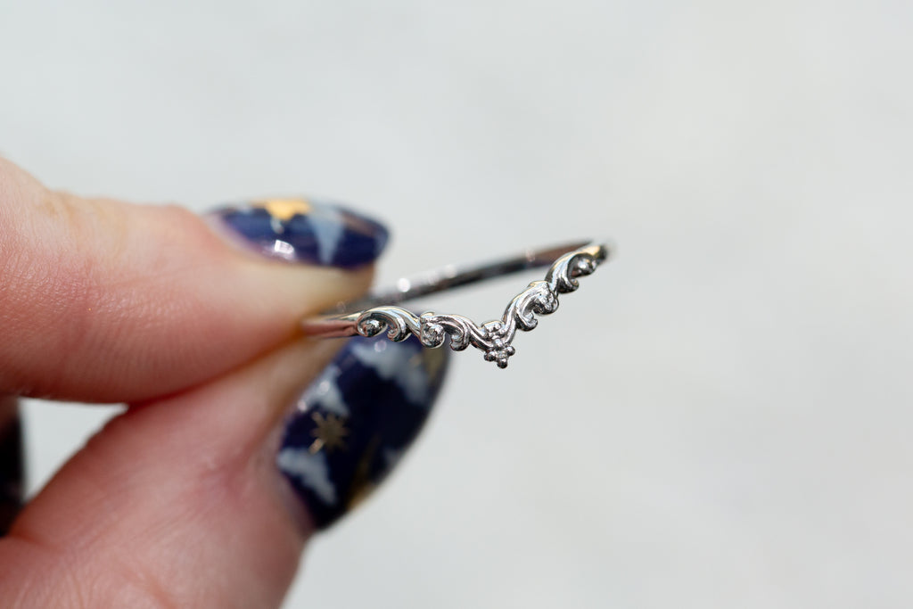 READY TO SHIP- Size 7.75, 14k white gold Curved Filigree Band
