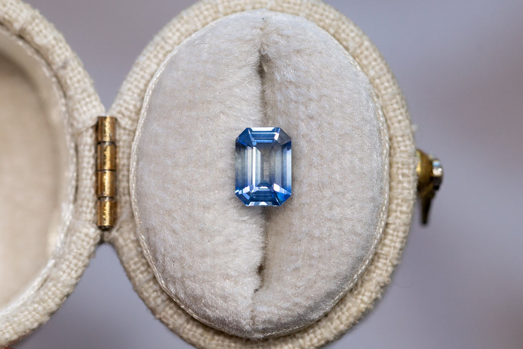 1.02ct Emerald Cut Blue and White Sapphire Parti Sapphire