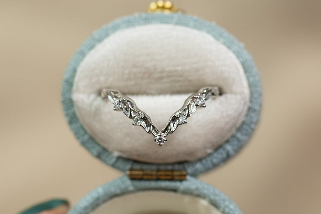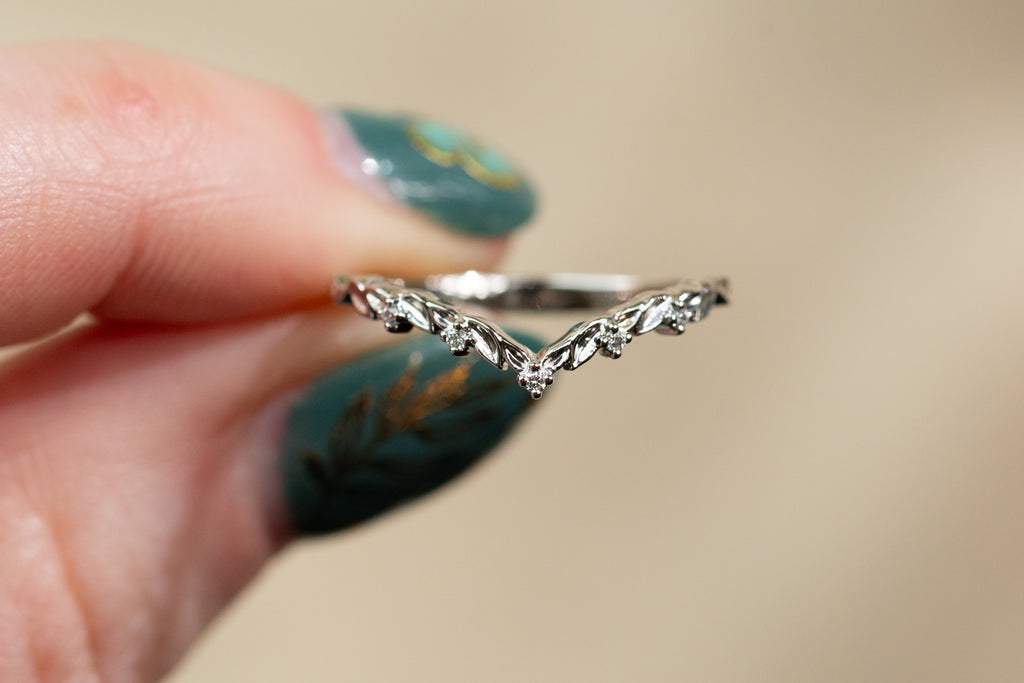 Ready to Ship - Size 6, 14k white gold Deep Chevron Leafy Wedding Band with 1.5mm accents