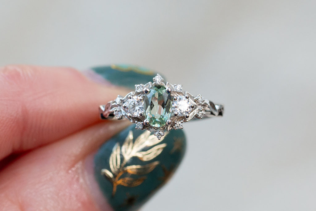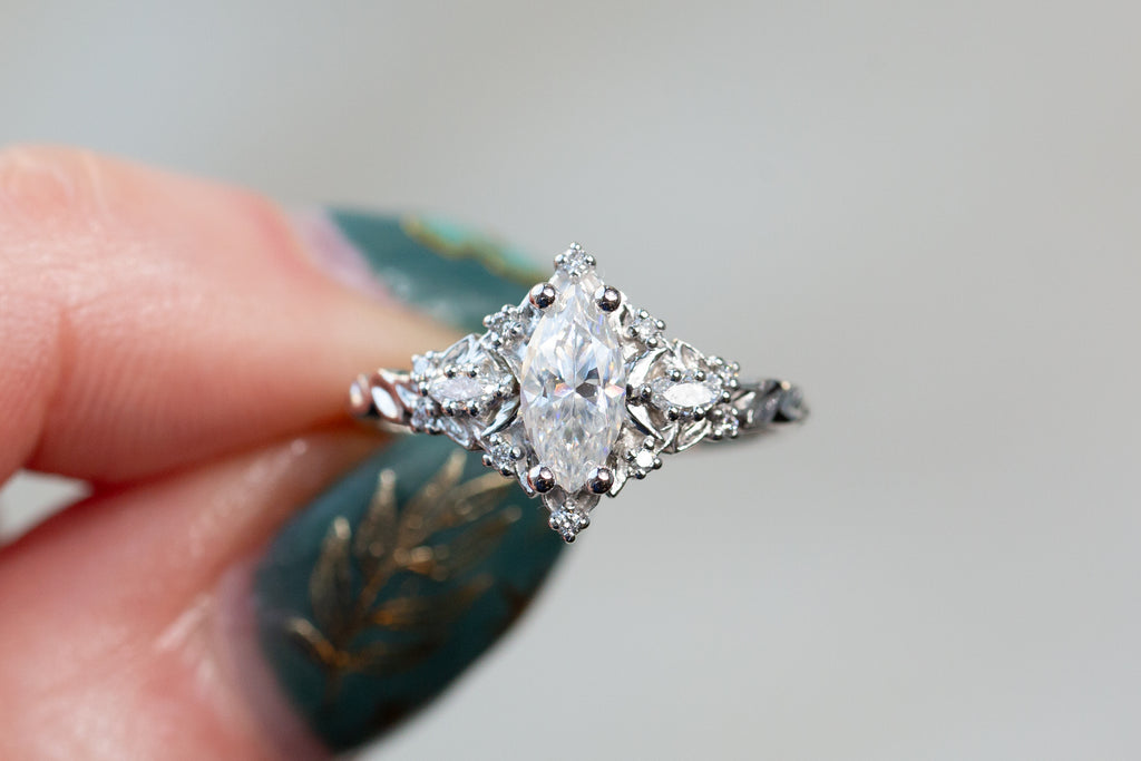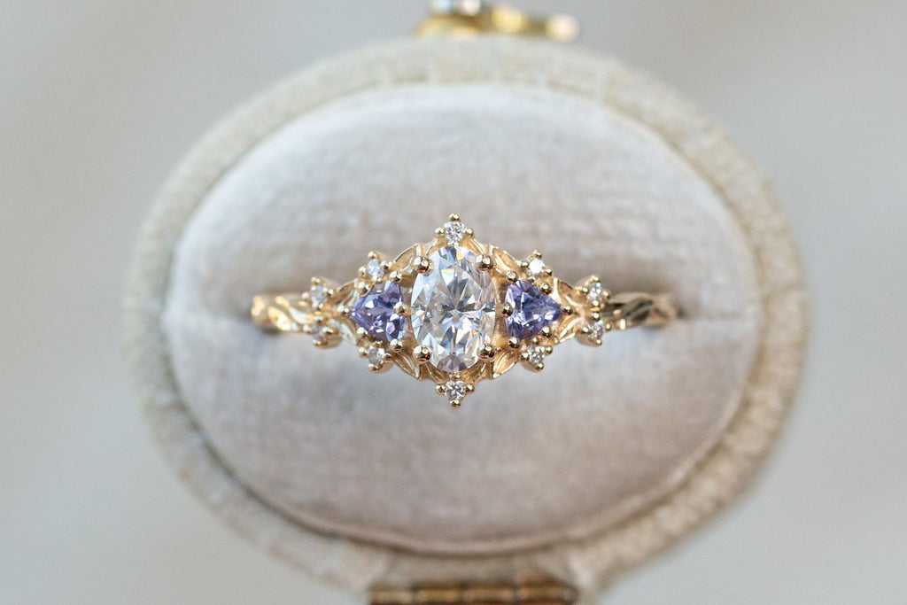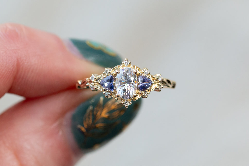 Ready to Ship - Size 4.75, 14k white gold Briar Moon Three Stone