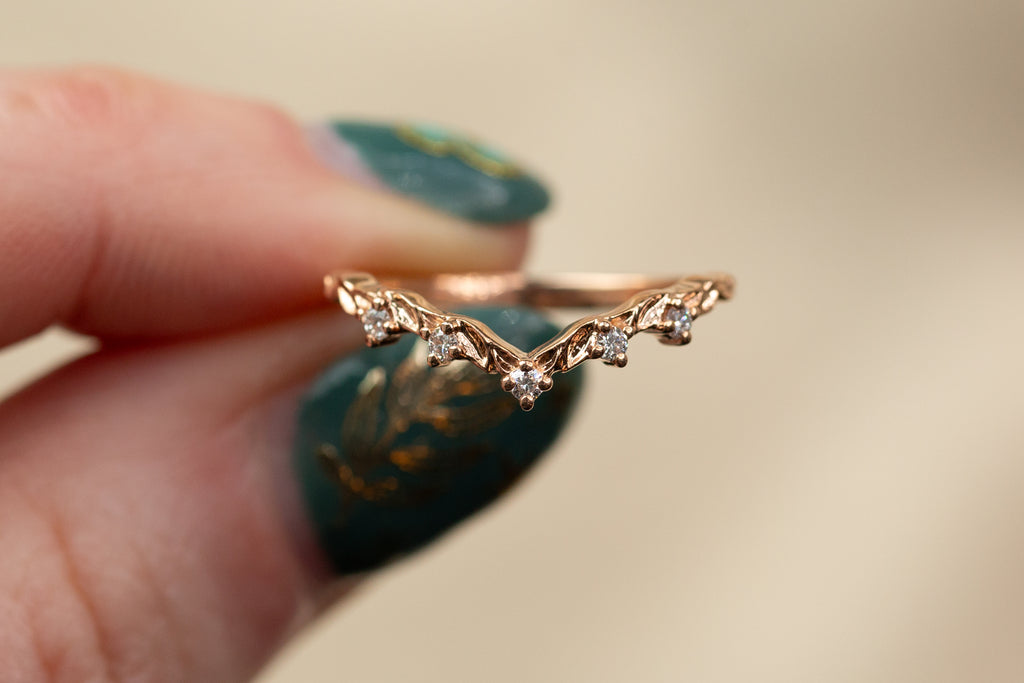 Ready to Ship - Size 5.5, 14k rose gold Chevron Leafy Band with 1.5mm accents