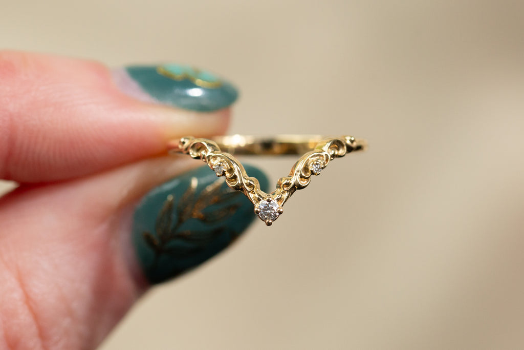 Ready to Ship - Size 5.5, 14k yellow gold Curved Filigree Wedding Band