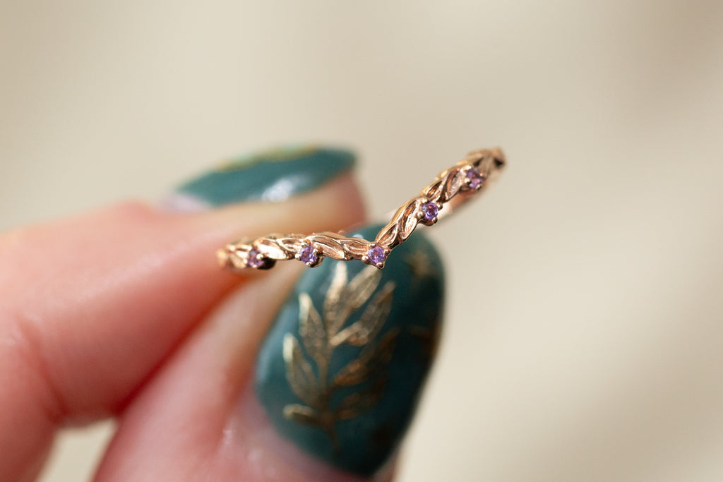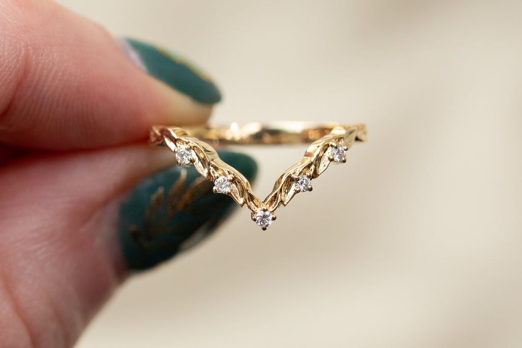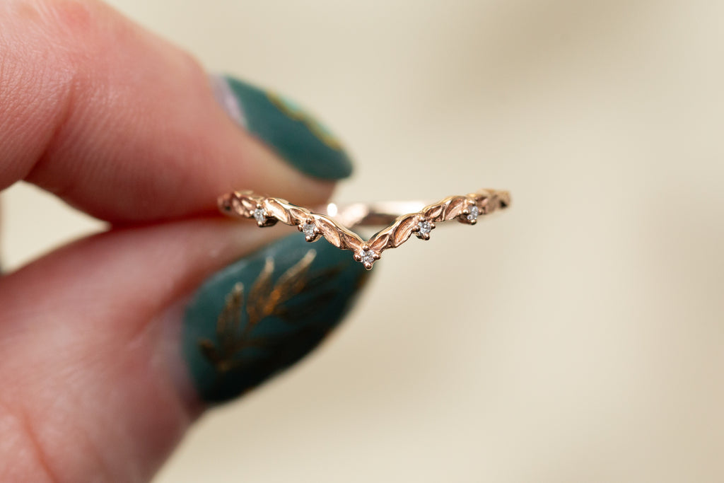 Ready to Ship - Size 5, 14k rose gold Chevron Leafy Wedding Band