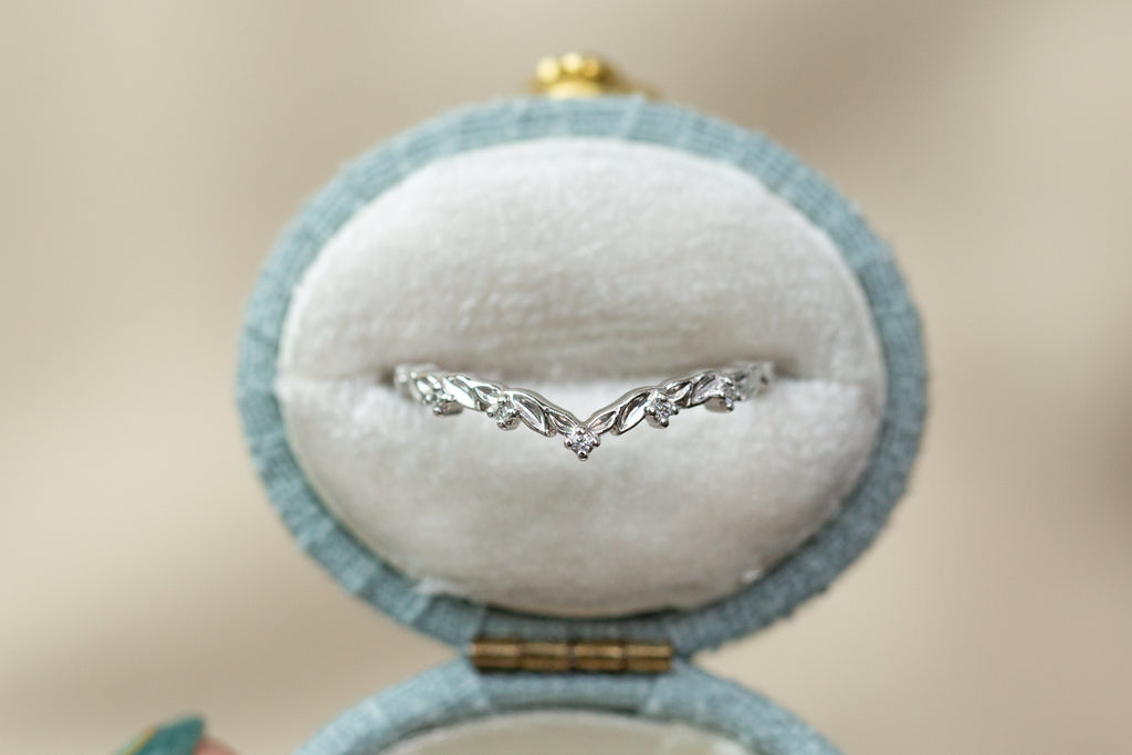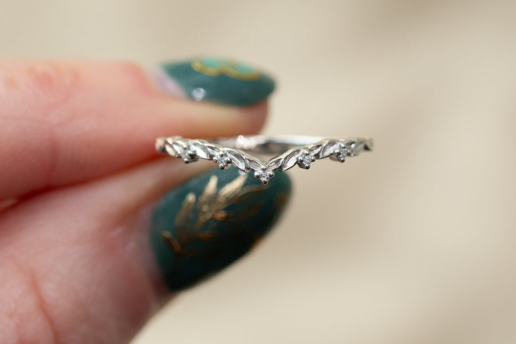Ready to Ship - Size 8, 14k white gold Chevron Leafy Band with 1.5mm Accents
