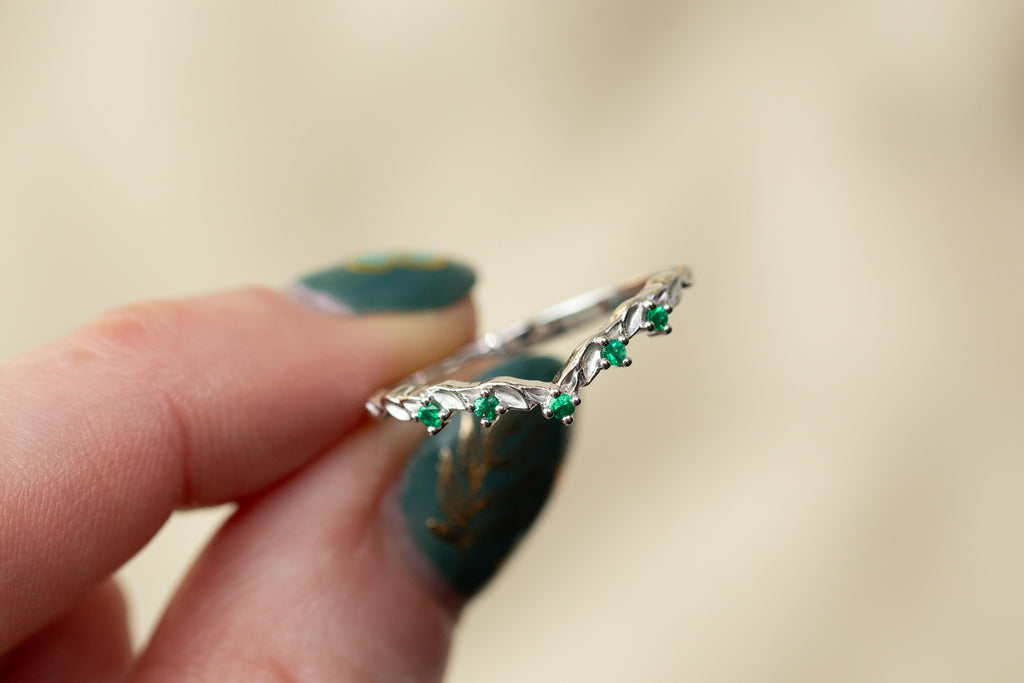 Ready to Ship - Size 7, 14k white gold palladium Chevron Leafy Band
