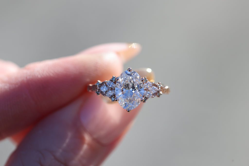 Ready to ship, Size 6.75 14k rose Enchanted Garden with oval lab diamond
