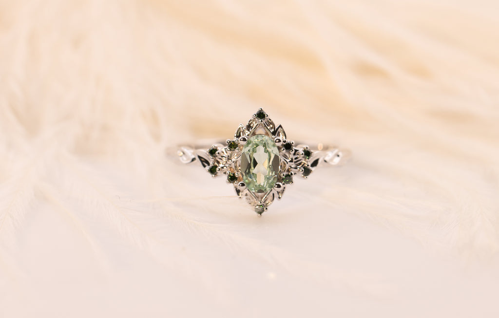 Ready to ship, Size 5.75 14k white, Briar rose starlight