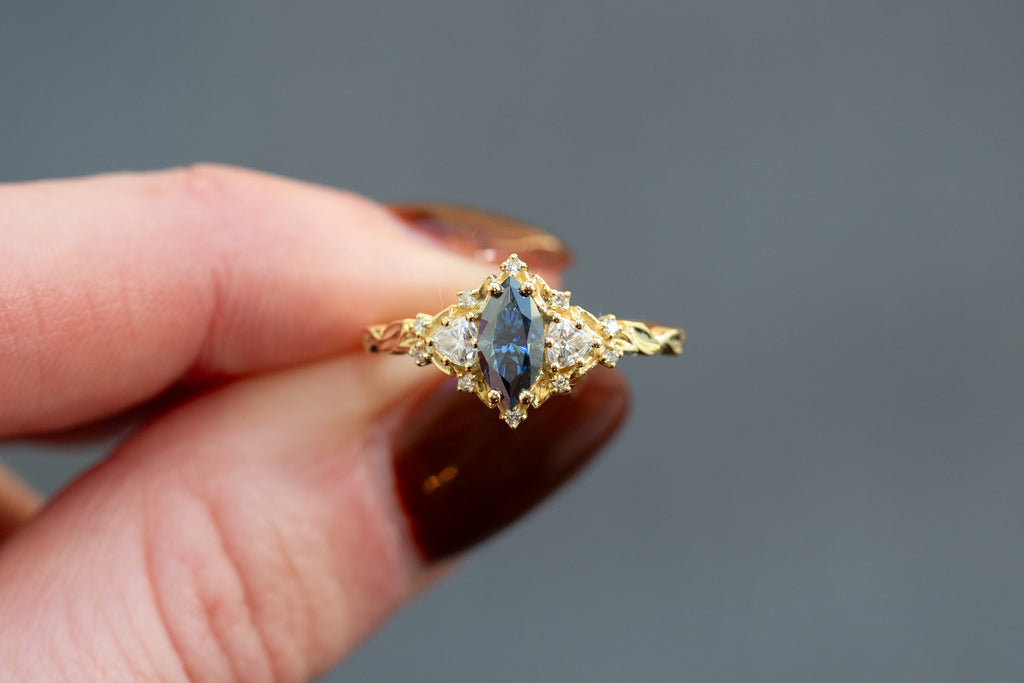 READY TO SHIP - Size 5, 14k Yellow Gold Briar Rose Three Stone