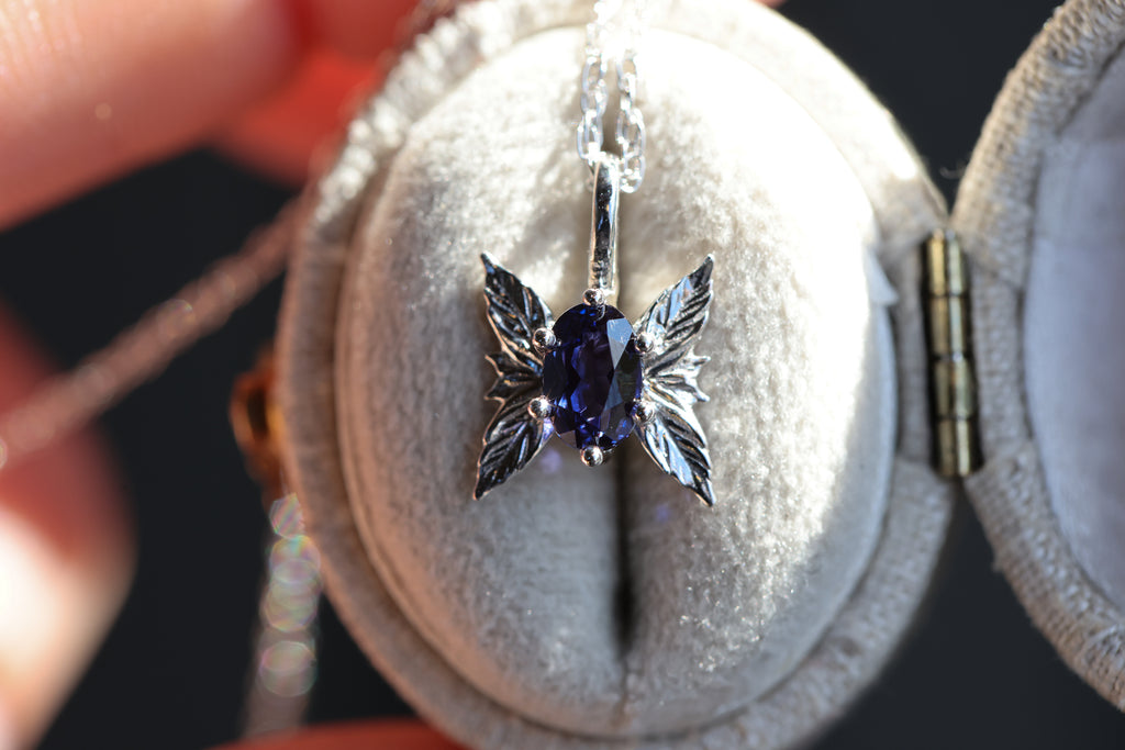 Ready to ship- Forest sprite with lab blue purple sapphire/14k white gold
