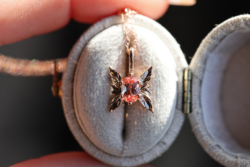 Ready to ship- Forest sprite with oval peach sapphire lab/rose gold