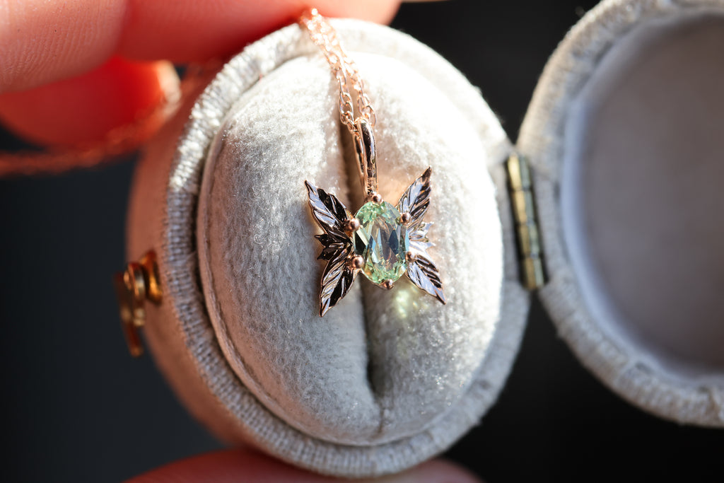 Ready to ship- Forest sprite with lab green sapphire/rose gold