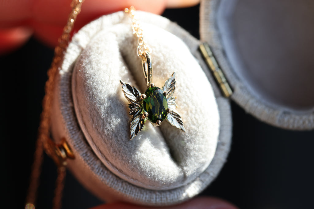 Ready to ship- Forest sprite with green tourmaline/14k yellow gold