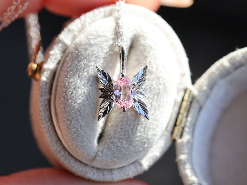 Ready to ship- Forest sprite with lab pink sapphire/14k white gold