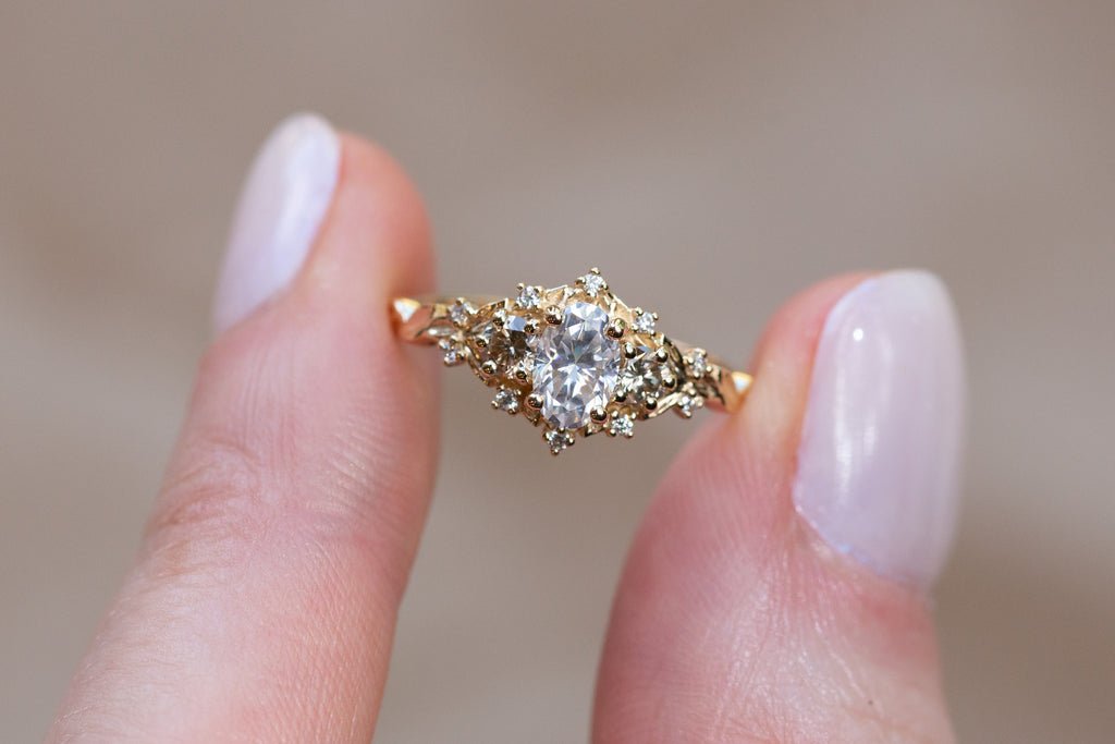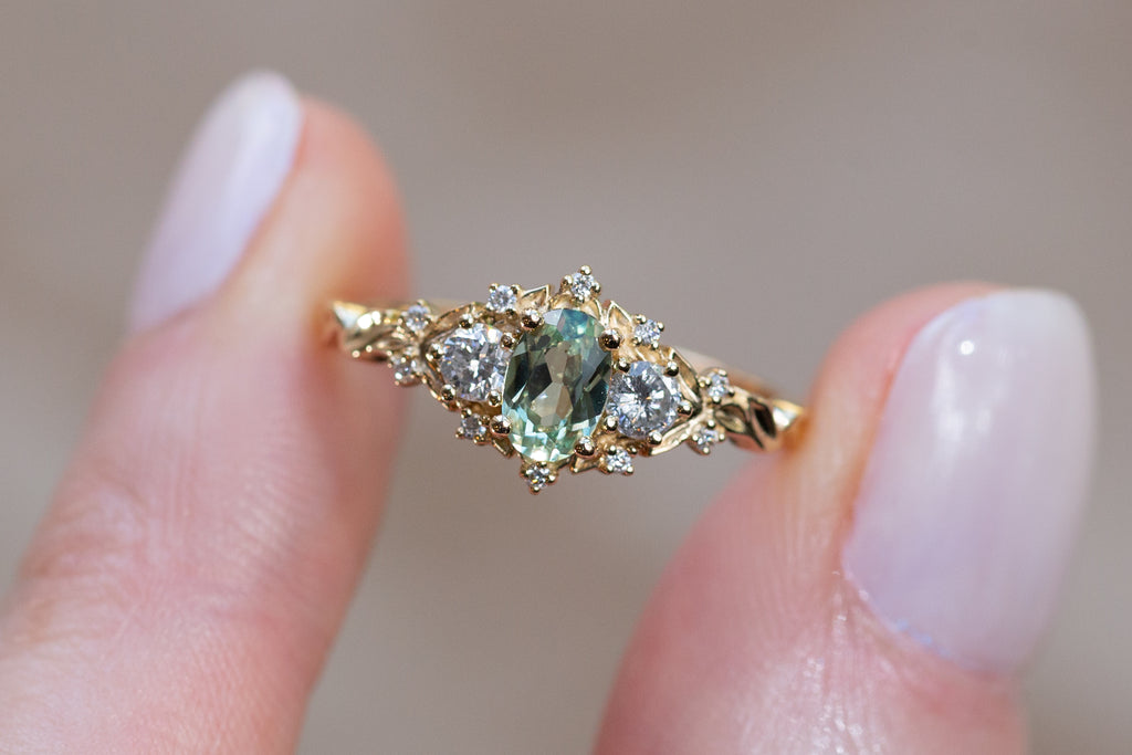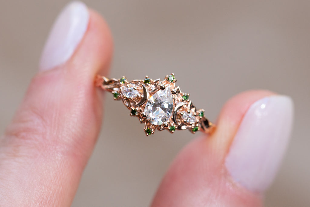 Ready to Ship - Size 7.75, 14k rose gold Briar Moon Three Stone