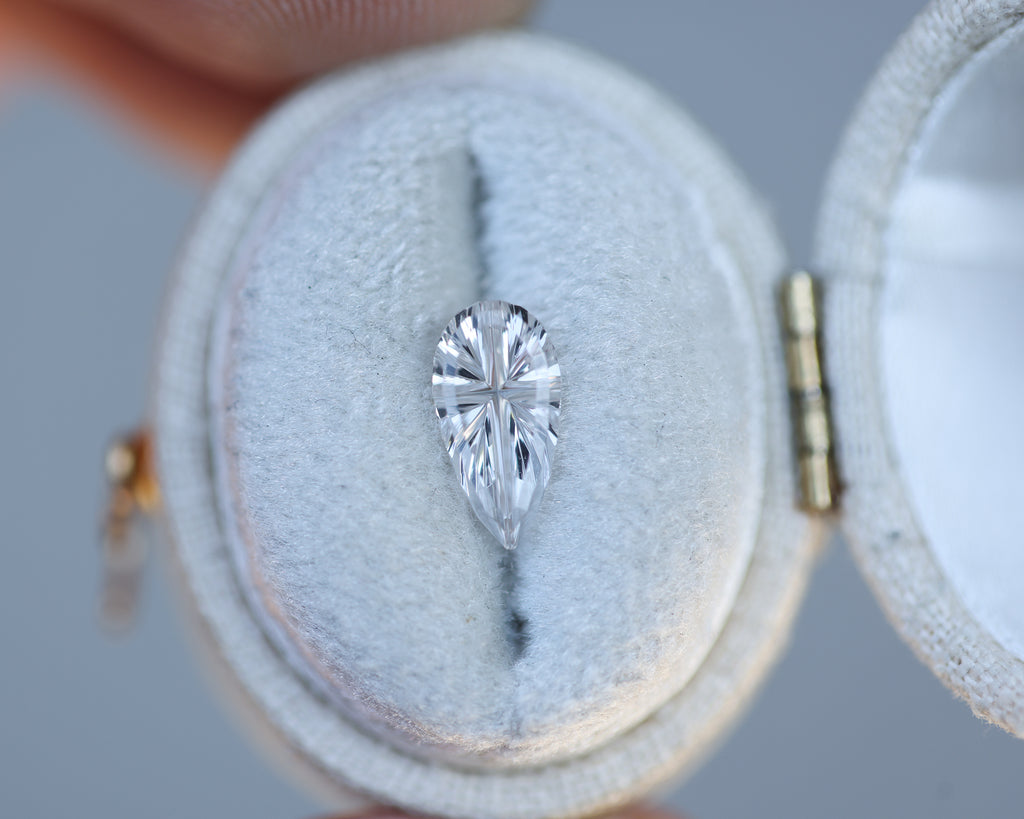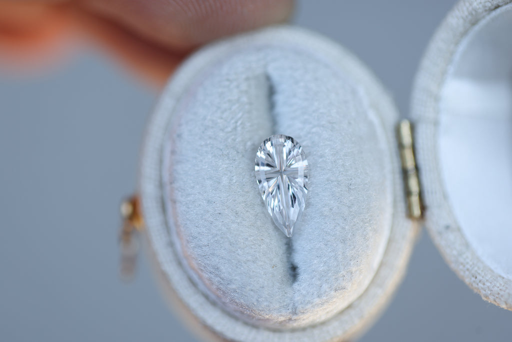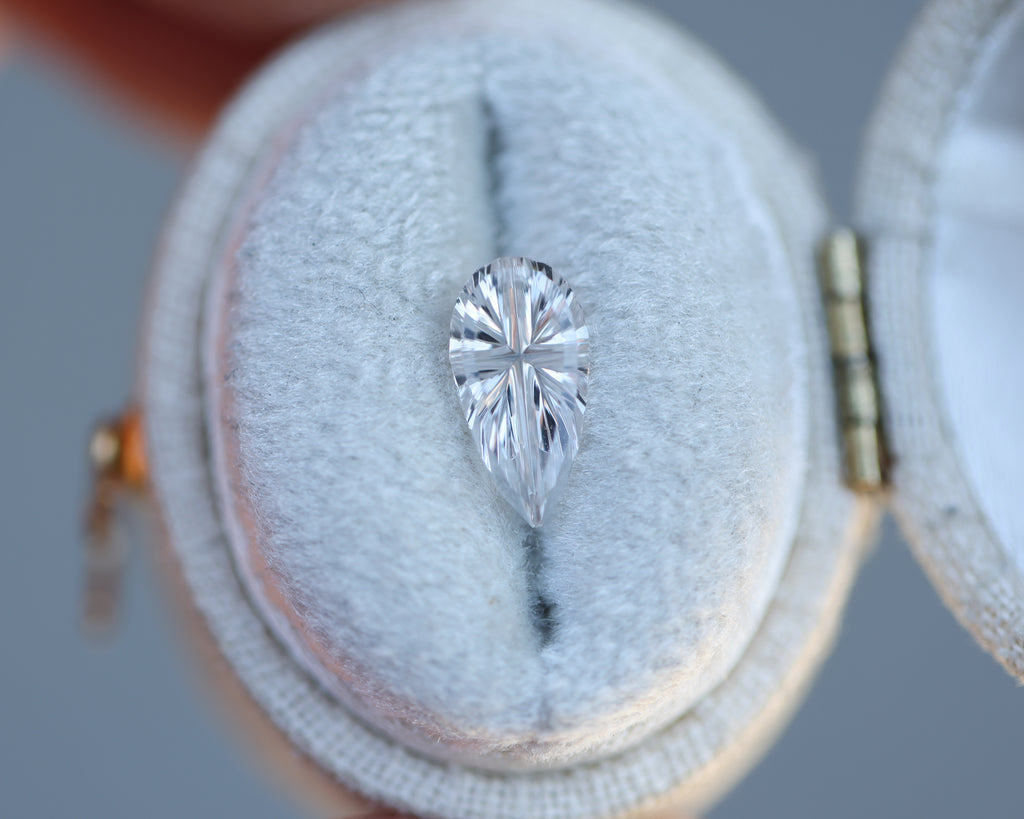 This absolute beauty is a custom cut Starbrite pear sapphire from award winning gem cutter John Dyer! It is the loveliest pale pink with such magical faceting! It will make an incredible special ring!