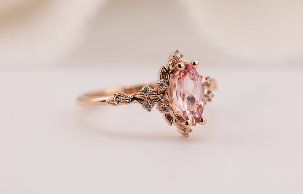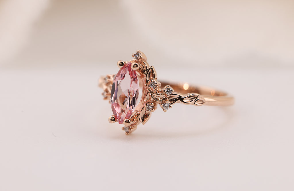 Briar rose halo with 9x4.5mm marquise lab peach sapphire