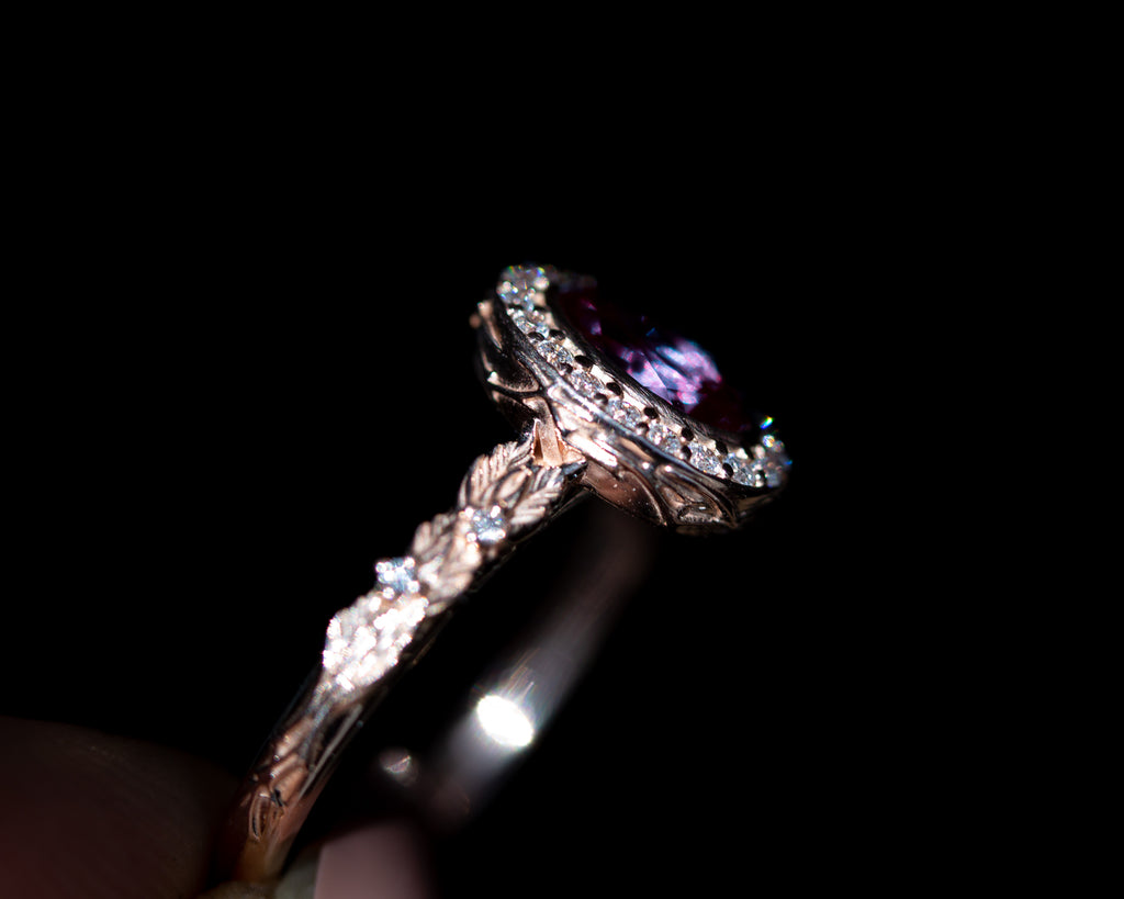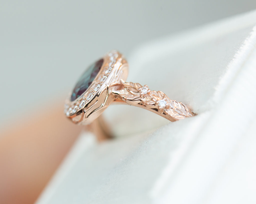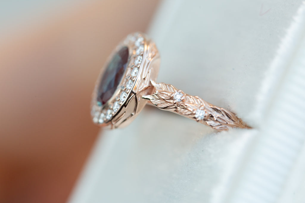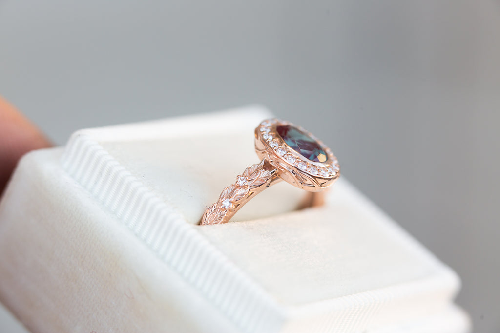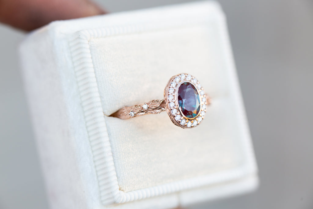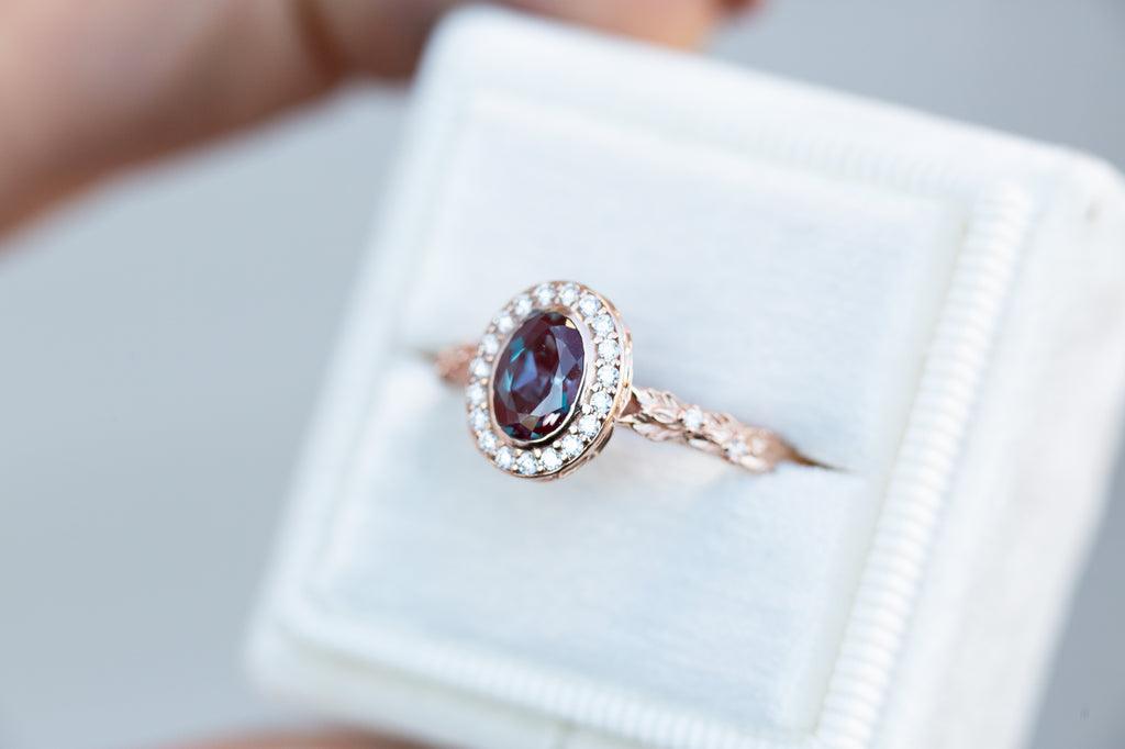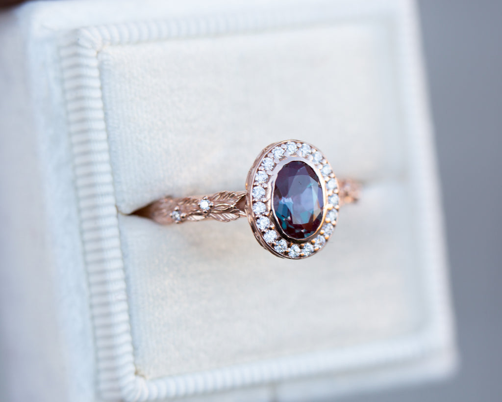 - *Please note that Alexandrite is a color changing stone that will mostly be a purple to green gem! You will also get some blue coloring and reddish purple in certain lighting but the blue you see in photos is actually green/teal in person! That is the nature of Alexandrite, there is no blue Alexandrite. Since this is such a unique stone we always recommend seeing in in person if you are able to!