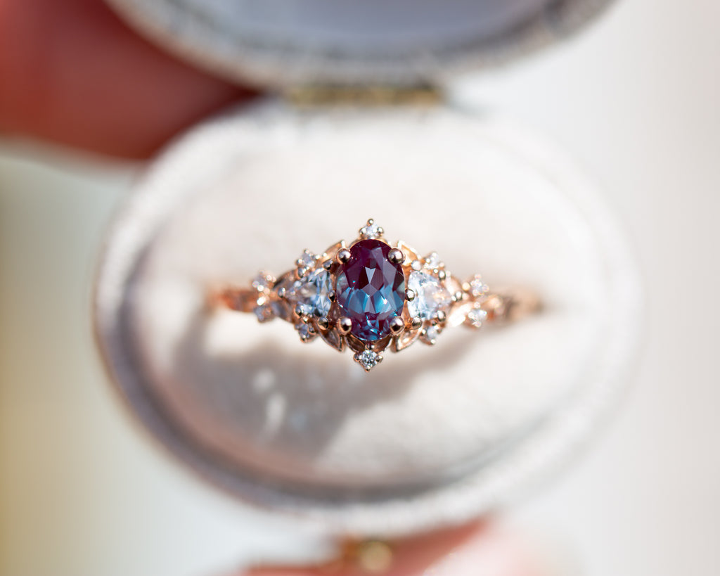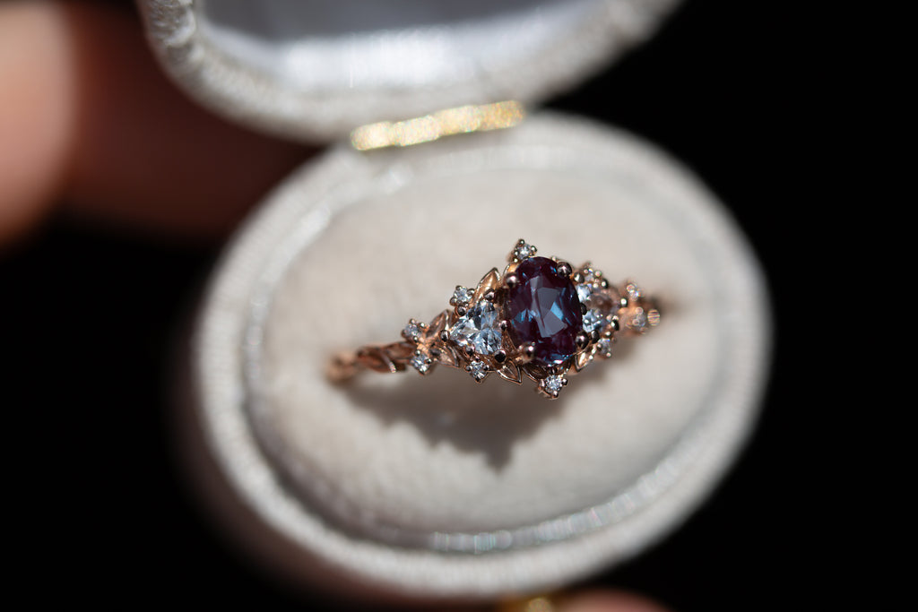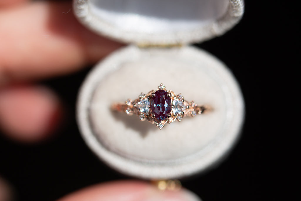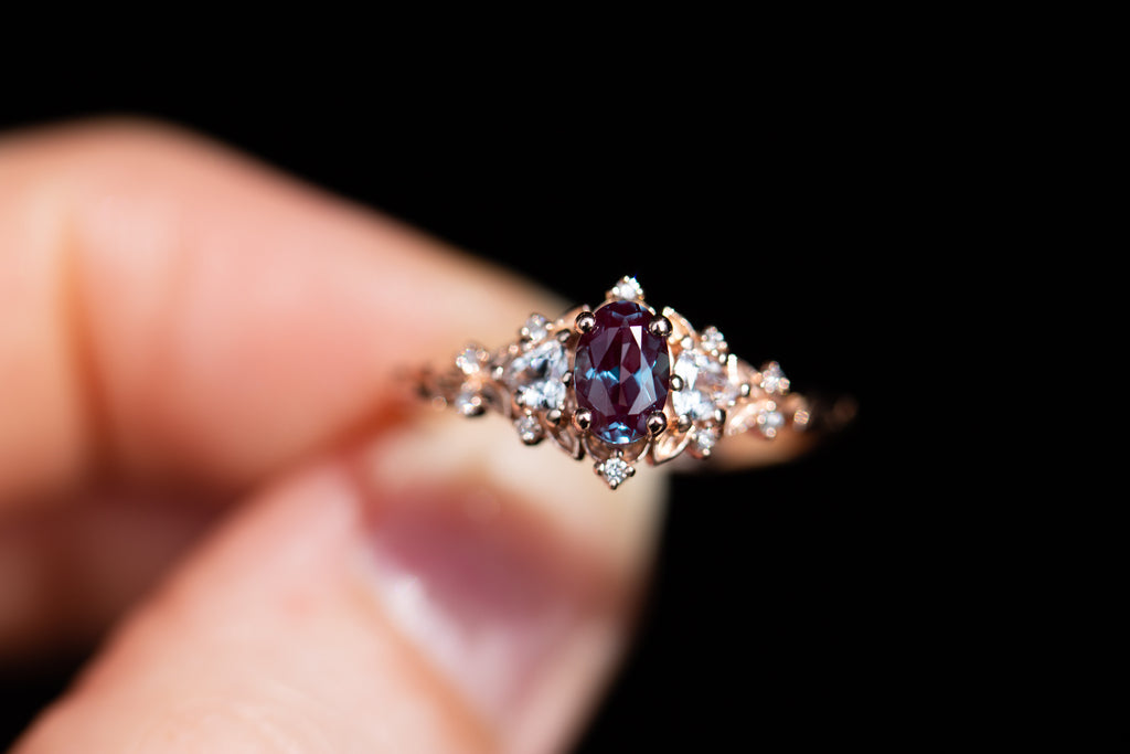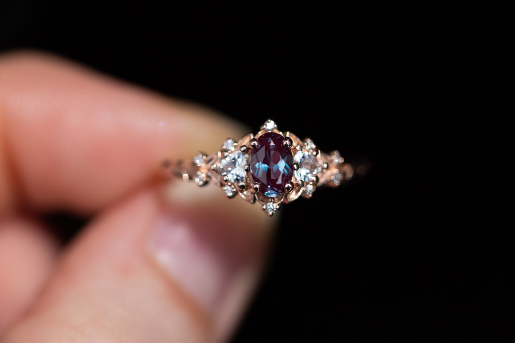- *Please note that Alexandrite is a color changing stone that will mostly be a purple to green gem! You will also get some blue coloring and reddish purple in certain lighting but the blue you see in photos is actually green/teal in person! That is the nature of Alexandrite, there is no blue Alexandrite. Since this is such a unique stone we always recommend seeing in in person if you are able to!