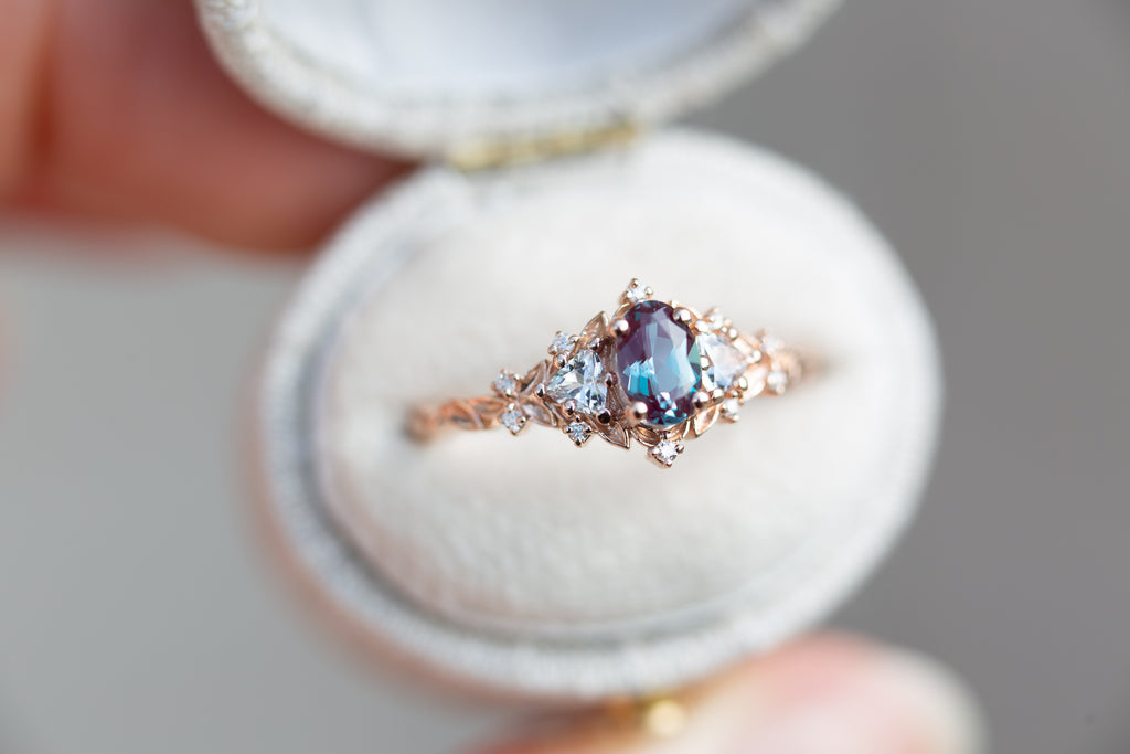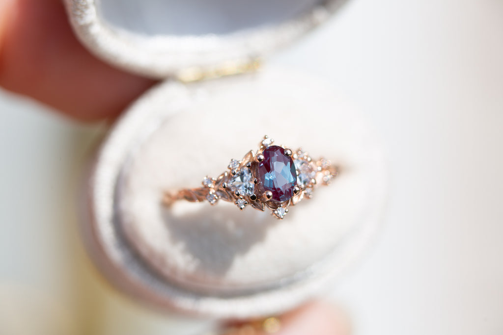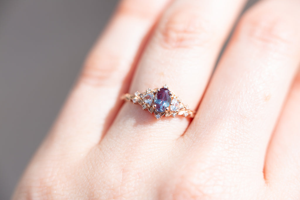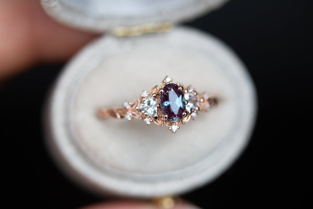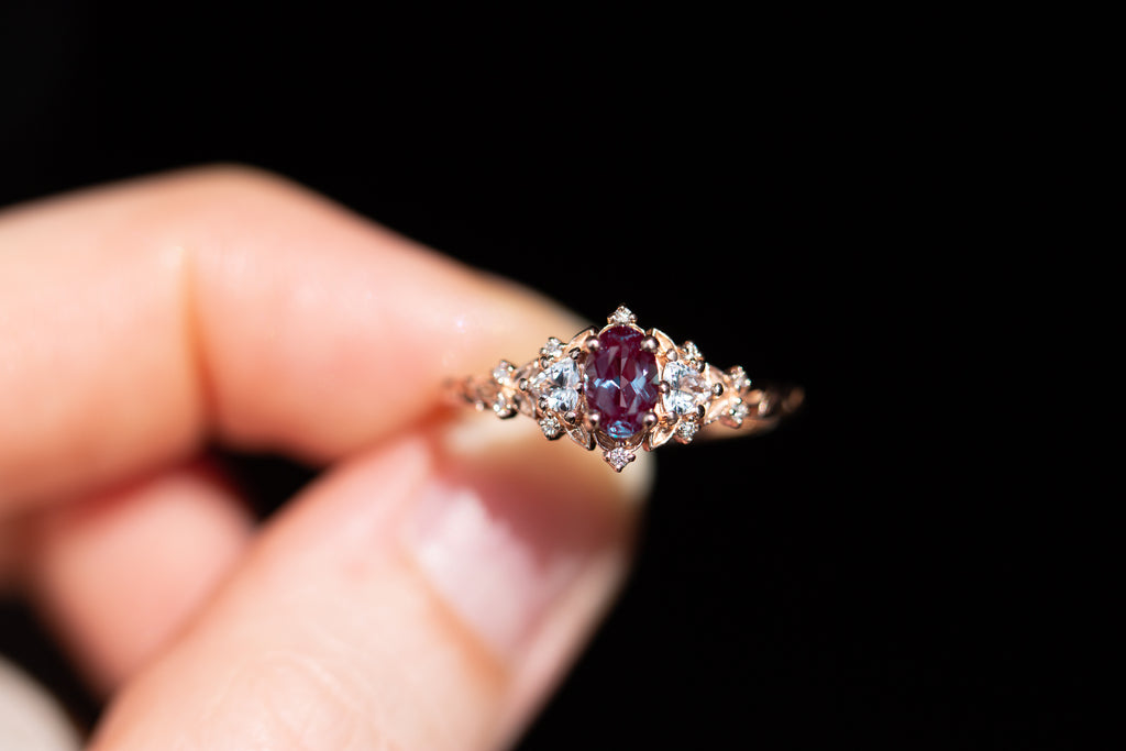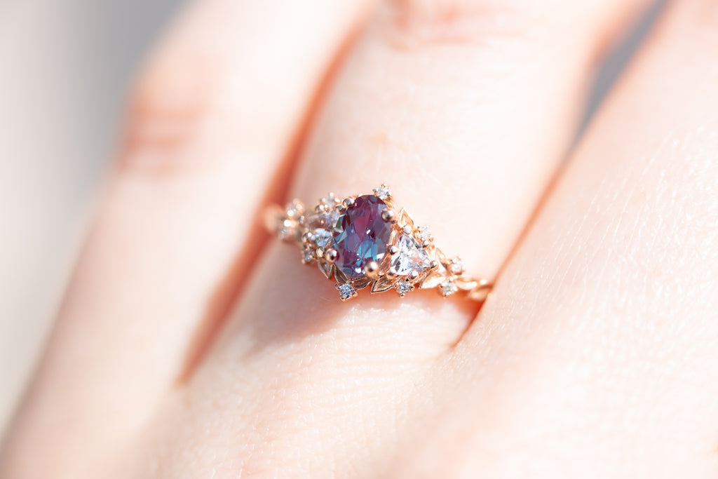 - *Please note that Alexandrite is a color changing stone that will mostly be a purple to green gem! You will also get some blue coloring and reddish purple in certain lighting but the blue you see in photos is actually green/teal in person! That is the nature of Alexandrite, there is no blue Alexandrite. Since this is such a unique stone we always recommend seeing in in person if you are able to!