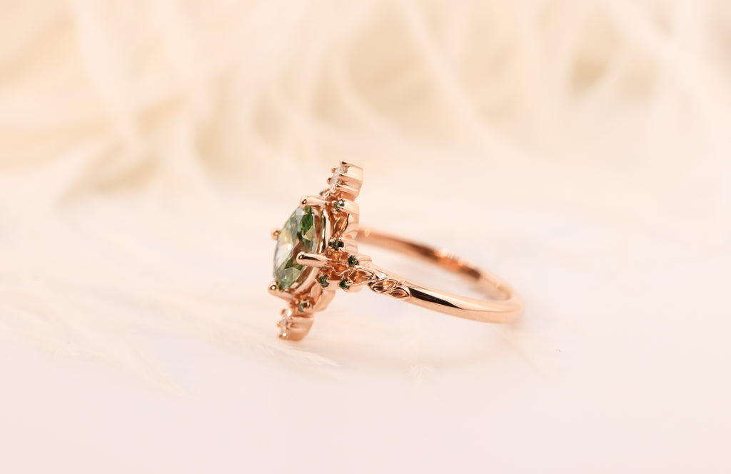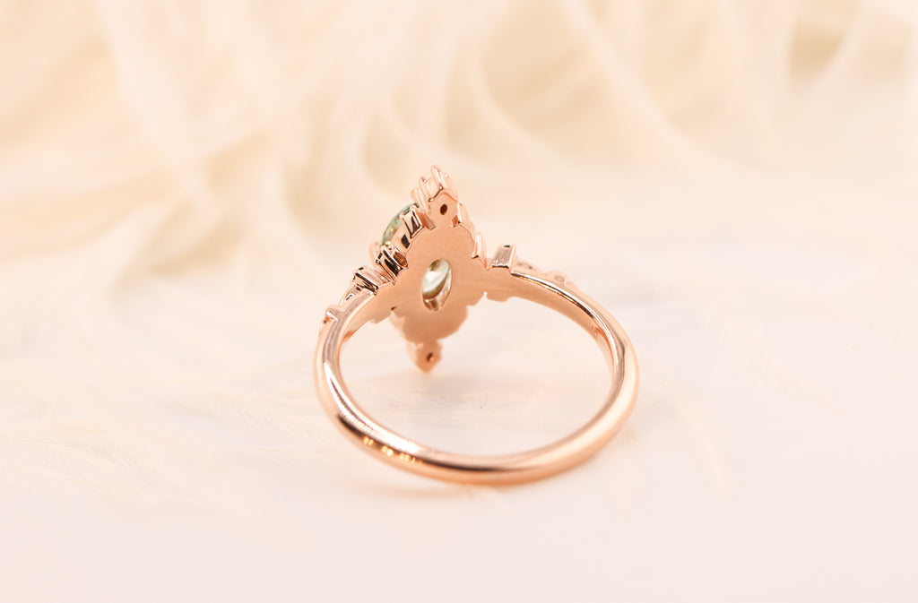 Ready to ship, Size 7 14k rose, Briar rose halo with marquise accents